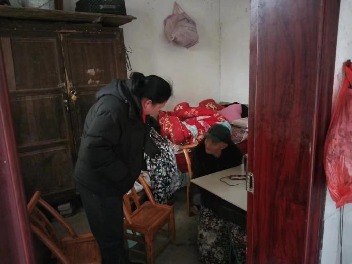 踏着大雪,镇机关干部、各村(社区)两委工作人员来到各困难群众及精神障碍患者的家中,关心询问群众身体状况,叮嘱群众注意保暖。