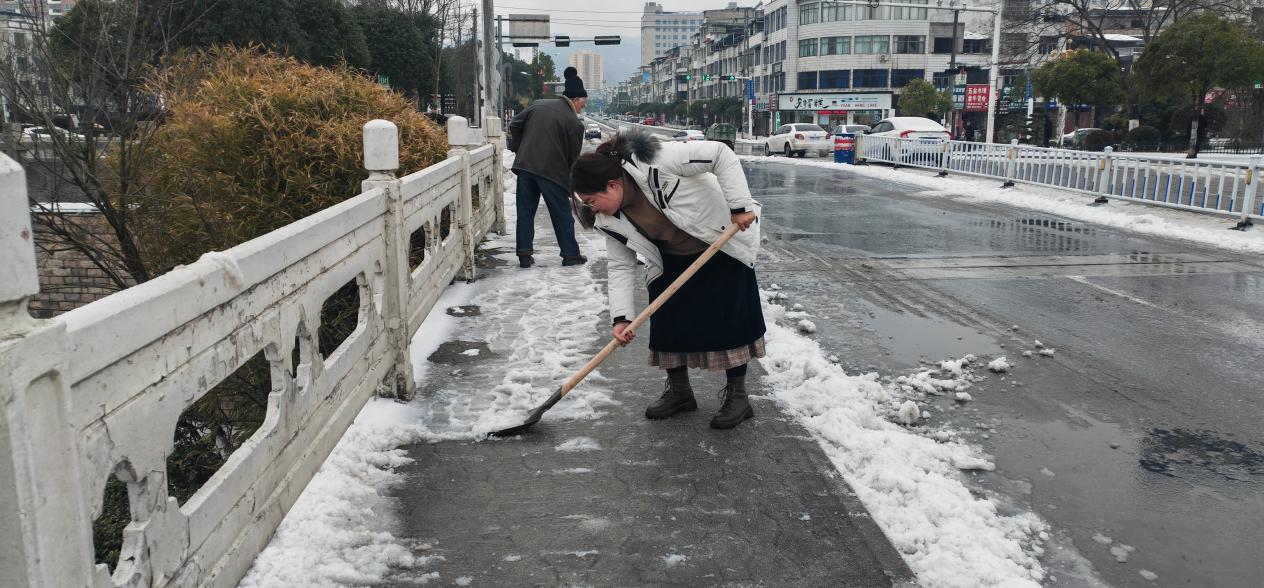 在推进会后,五里镇主要负责人现场指挥相关部门做好清雪保畅工作,并调度集镇、高速路口等重点场所的积雪清扫和物资保障工作。行动现场,班子领导分组分片,带头投身除冰行动,70余名机关干部第一时间走上街头,争分夺秒清理集镇道路冰块;临街单位及商户积极响应“敲门行动”,及时清理门前积雪;各村(社区)工作人员组织居民及时清扫积雪,积极走访看望辖区内困难群众,帮助清理院里的积雪,解决实际困难;广大群众志愿者迅速响应,发挥主人翁精神,积极开展各项雪后应对工作。在各个重点公共场所和交通主次干道到处都是挥锹奋战的身影,大家不畏严寒,齐心协力,一铲一铲将雪推至路边,用热情和汗水融化着冰雪,铺就了一条条安全通道。全民参与、全民动员的忙碌身影汇成了冬日雪天里的一道靓丽风景线。