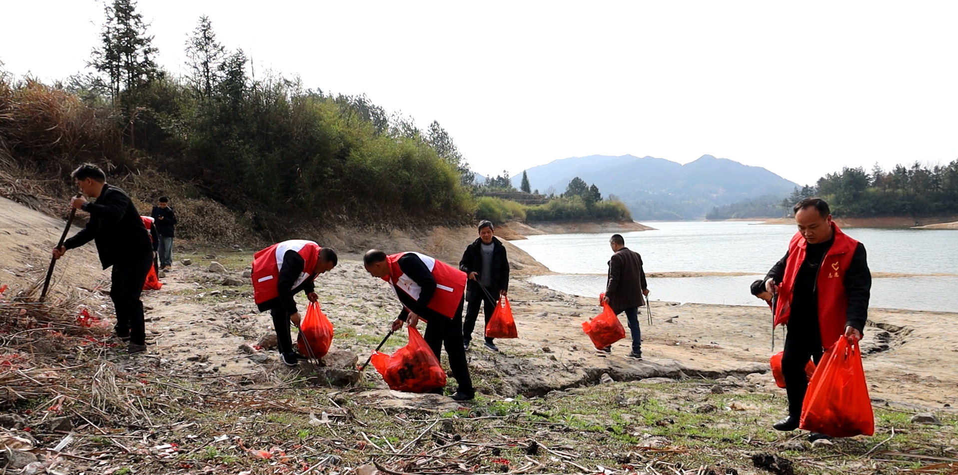 当天,石南镇还组织百余名党员干部和保洁员在左港水库开展水源地保护志愿行动,清理水库堤坝及周边的垃圾,向沿线村民宣传河湖生态环境保护措施,提醒大家不要乱扔杂物、不要污染水源,引导大家投身到饮用水源地保护中来,共同护卫饮水安全、保护生态环境。
