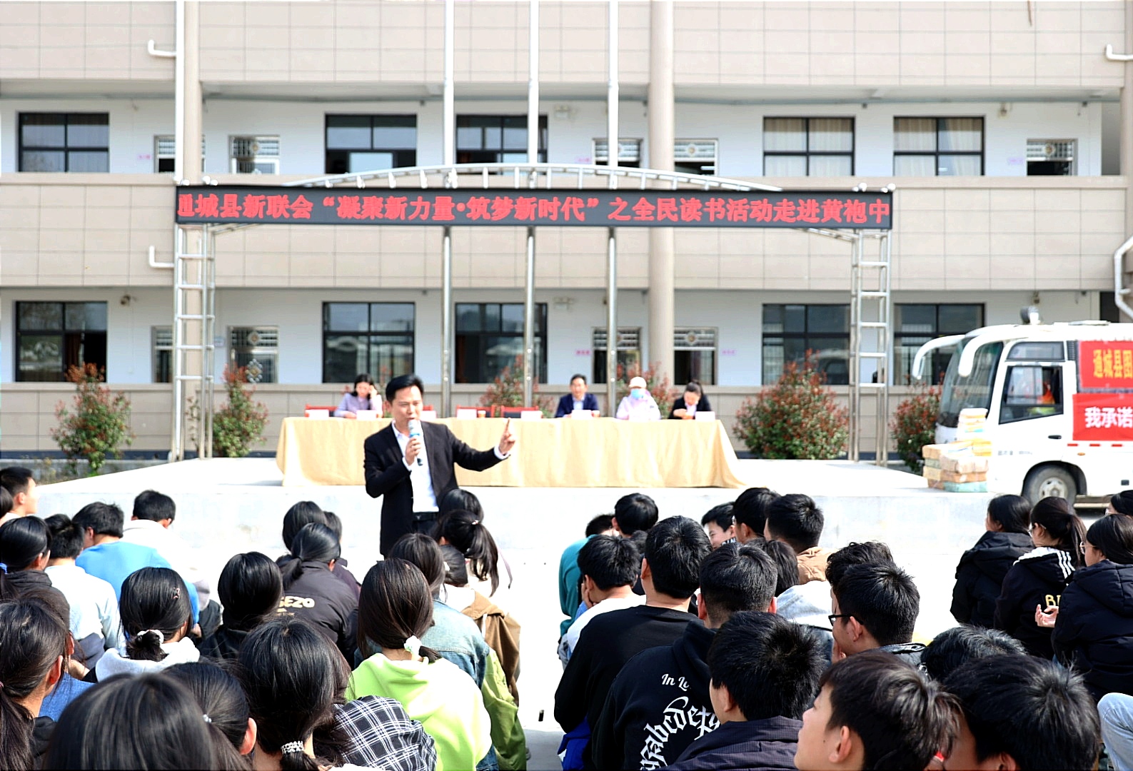 【全媒体记者 李索】3月22日,通城县图书馆联合县委统战部、县新联会,在塘湖镇黄袍中学开展以“凝聚新力量·筑梦新时代”为主题的全民阅读活动,引导青少年从阅读中获取精神食粮、沉淀文化底蕴,营造浓厚的校园读书氛围。