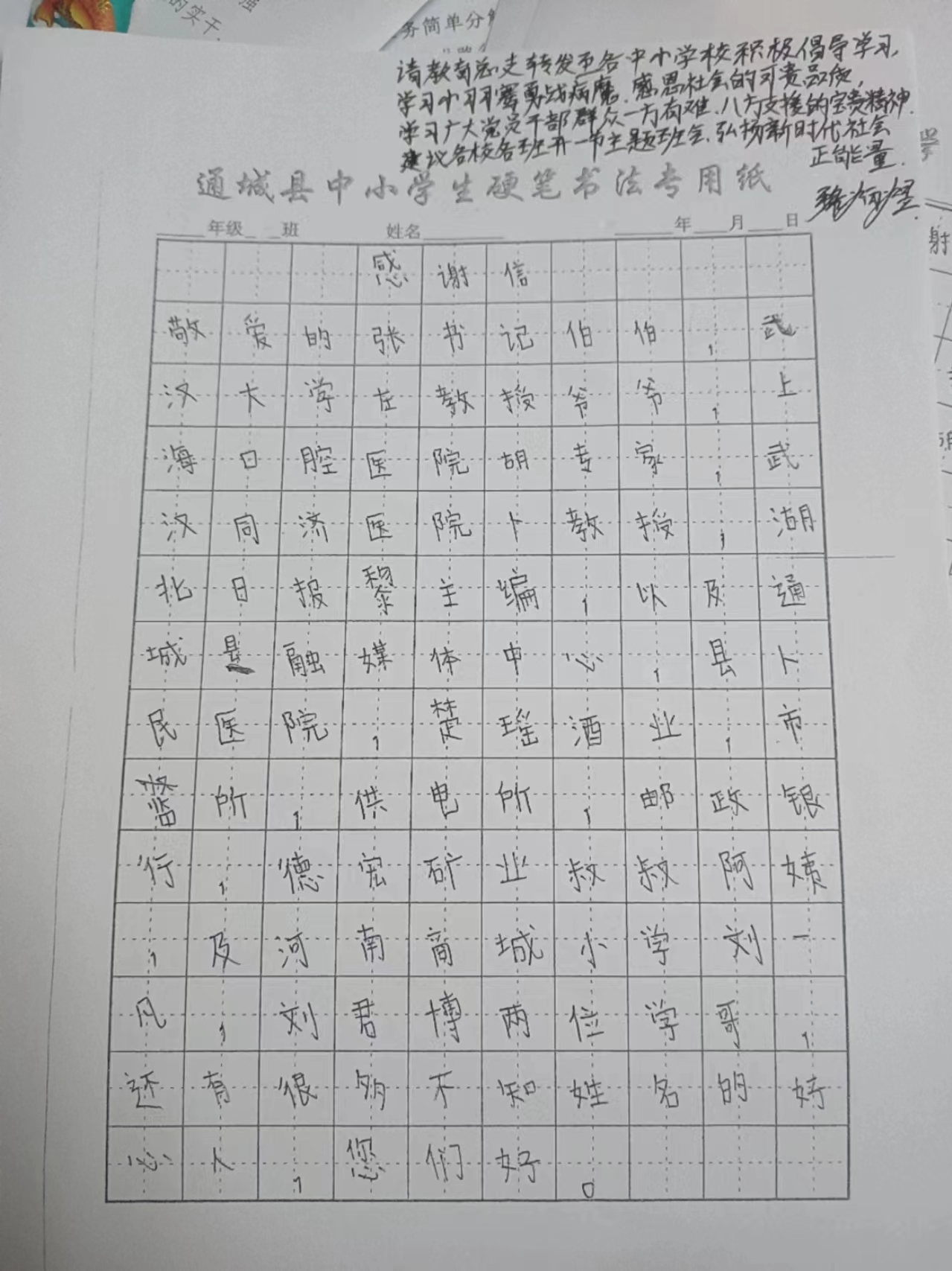 通城县北港小学学生 胡羽骞:感谢北港政府和学校对我的帮助,感谢这么长时间关心我的爱心人士,正是有了你们的帮助,才让我熬过了这段艰难的时光。我要好好学习,长大后努力回报社会。