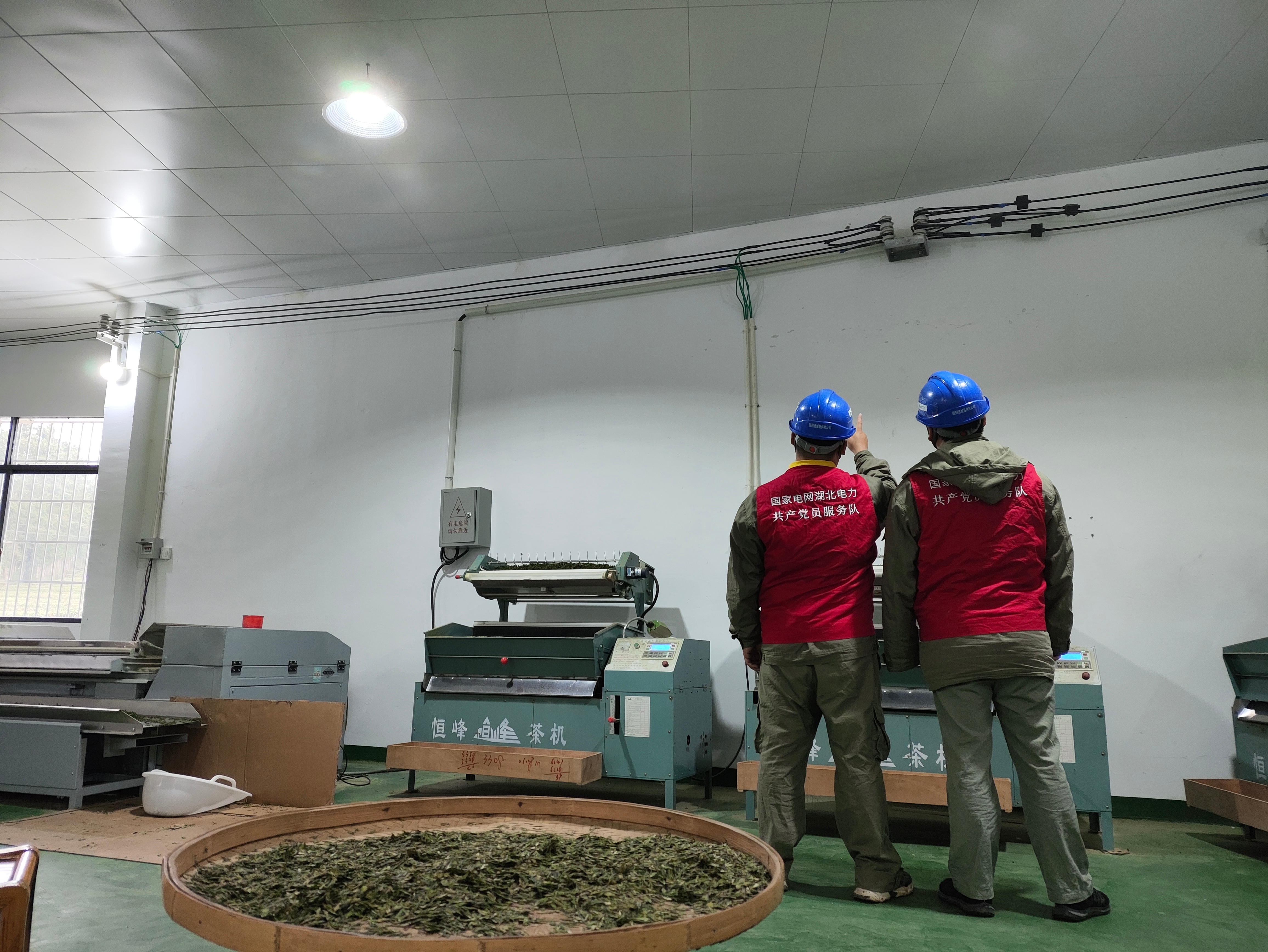 在春茶采摘加工时期,杀青机、烘干机、揉捻机等用电设备一齐上阵,用电负荷骤增。为避免供电台区出现季节性的“小马拉大车”现象,水兴供电所成立春茶保供专项工作组,编制春茶保供电预案,做好24小时应急抢修安排,确保茶农茶企用电无忧。
