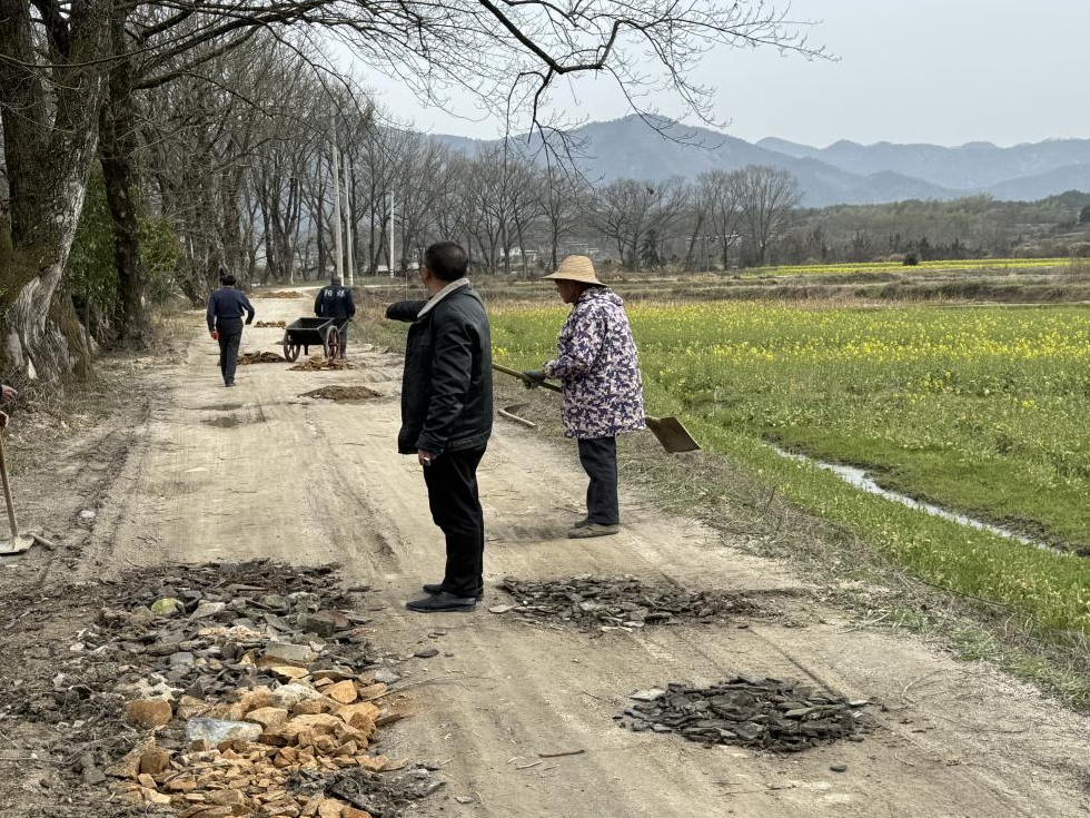 3月28日,通城县四庄乡四庄村党员中心户长主动挑起担子,到四庄村八组泥泞路段修复坑洼,帮助群众改善出行环境。他们还聘请专业人士对路况进行现场勘查,并就地取材,转运附近山体滑坡而下的碎石,不少村民也纷纷加入其中,大家一起平整路面、摊铺沙石,最后将路面碾压平整,确保道路的质量和使用寿命。