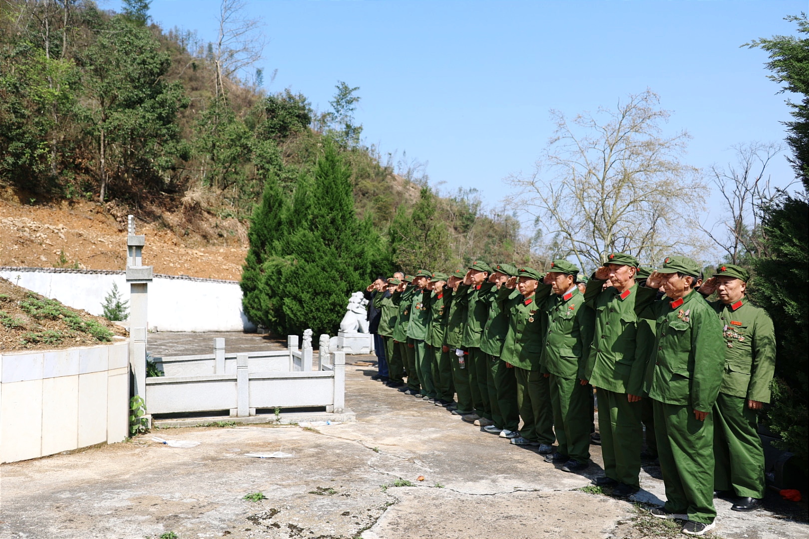 在庄严肃穆的陈寿昌革命烈士墓前,全体退伍老兵整齐列队、低首肃立,面向陈寿昌烈士墓鞠躬,表达对英烈的哀思,并依次为革命先烈敬献鲜花,向革命先烈致以崇高敬意。