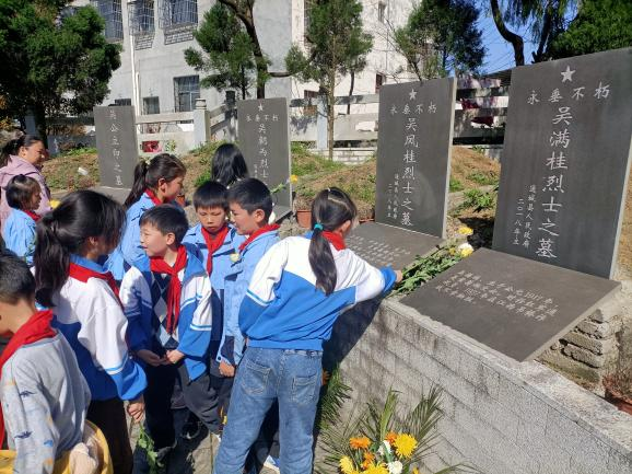 【通讯员 刘雨梦】日暖风熏,翠柏凝春,又是一年春草绿,又到一年清明时。为了深化未成年思想道德建设,铭记历史,缅怀革命先烈,进一步加强爱国主义、党史国史教育,传承红色基因,争做新时代好少年,3月29日上午,通城县塘湖镇大埚完小组织全校师生来到革命母亲黄菊妈陵园,开展“青山藏忠魂,清明祭英烈”清明节祭扫活动。