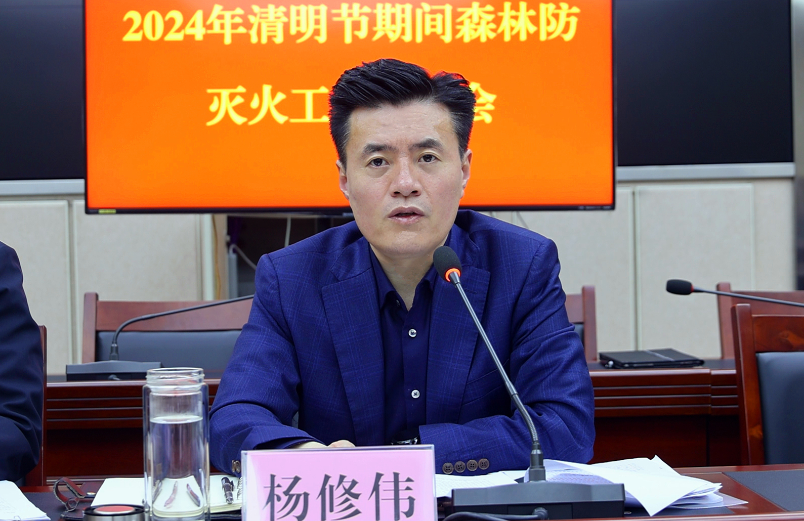 杨修伟强调,要进一步压实责任,按照“县—乡—村—护林员”四级包保要求,严格落实属地管理责任、指挥部牵头抓总责任、部门监管责任、分片包干责任,看牢守住每一块林地,切实做到林有人护、火有人防、责有人担。要强化火种火源管控,全面建立护林员巡查考勤系统,做好重要卡口、重点山头、重点路口、重点林区的值守和巡防工作,严格执行野外用火审批制度,落实好用火责任人和各项防范措施,加强事前、事中、事后监管,确保万无一失。要加强督导检查,深入一线检查防火责任、野外火源管控措施、队伍建设、扑火准备等工作落实情况,确保森林防火各项工作落实到位。要持续加强队伍建设,规范森林消防队伍日常训练、管理和值班备勤,一旦发生火情火警,及时组织科学扑救,实现打早、打小、打了,确保不发生较大火灾。要进一步提升基础设施建设水平,加快推进森林防火阻隔和视频监控系统等项目建设进度,全面提升森林火灾综合防控能力,确保全县森林资源和人民群众生命财产安全。