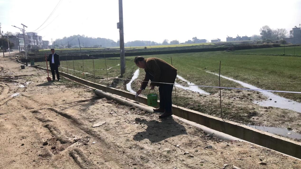 在绿化的过程中,村两委干部和村民们每相隔四米的距离都画上了记号,在确保美化景观的同时,树木也有足够的生长空间和充足的营养供应。当天栽种的150棵果树,是村两委和村民代表,根据气候、土壤条件精心挑选、适宜当地土壤气候的种类,分别为桃树、杏树、石榴、梨树、李树、柚子、枇杷等。