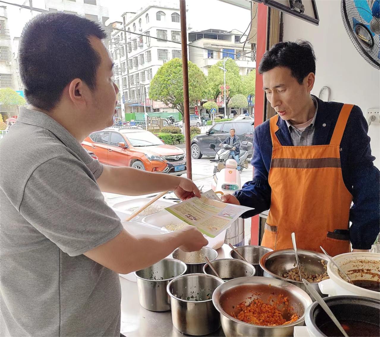 活动中,社区“两委”干部、网格员在辖区各食品经营企业张贴创食公益广告、宣传标语,进一步督导企业落实主体责任,筑牢食品安全防线,主动向消费者普及创食宣传;同时在主街道、商场、居民小区、公园等人流密集场所派发宣传单,向群众普及食品安全科学知识,动员大家共同参与创城。
