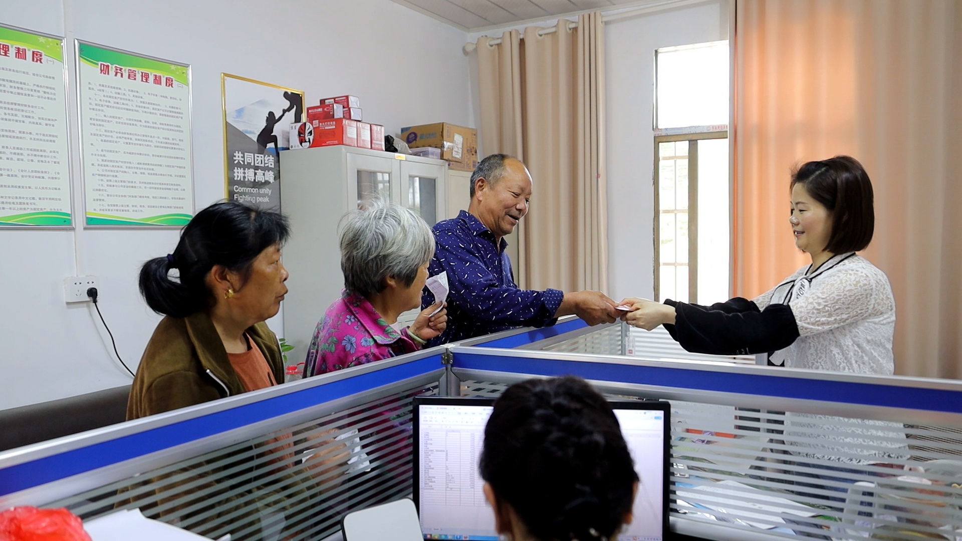 通城县大柱山茶厂管理人员 梅和平:我们采取人性化的管理,中午为他们安排工作餐,每天的工资发现金,他们很高兴。