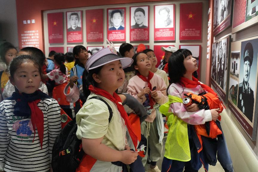 在通城县九岭革命烈士纪念馆,师生们怀着崇敬的心情跟随纪念馆讲解员的脚步,重温了革命先烈赵世当回到通城成立青年读书团、秘密发展党组织、吸收地下党员、建立党支部的革命故事,追溯了罗荣桓元帅部署、发动秋收暴动起义的革命历史。