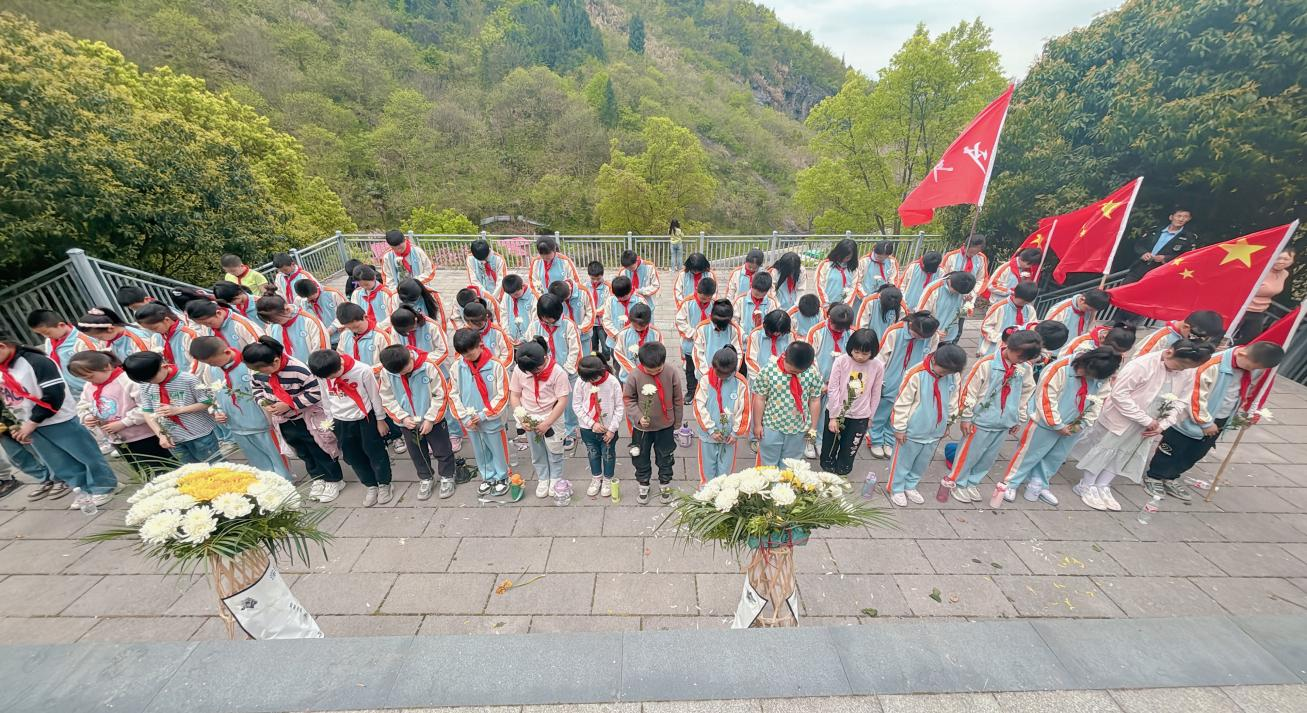 【通讯员 金燕】“桃花红雨英雄血,碧海丹霞志士心。今日神州看奋起,陵园千古慰忠魂。”4月1日上午,在清明节即将到来之际,通城县塘湖镇夏家完小全体师生徒步到黄袍革命烈士纪念碑举行以“清明祭英烈,哀思祭忠魂”为主题的清明祭扫活动。