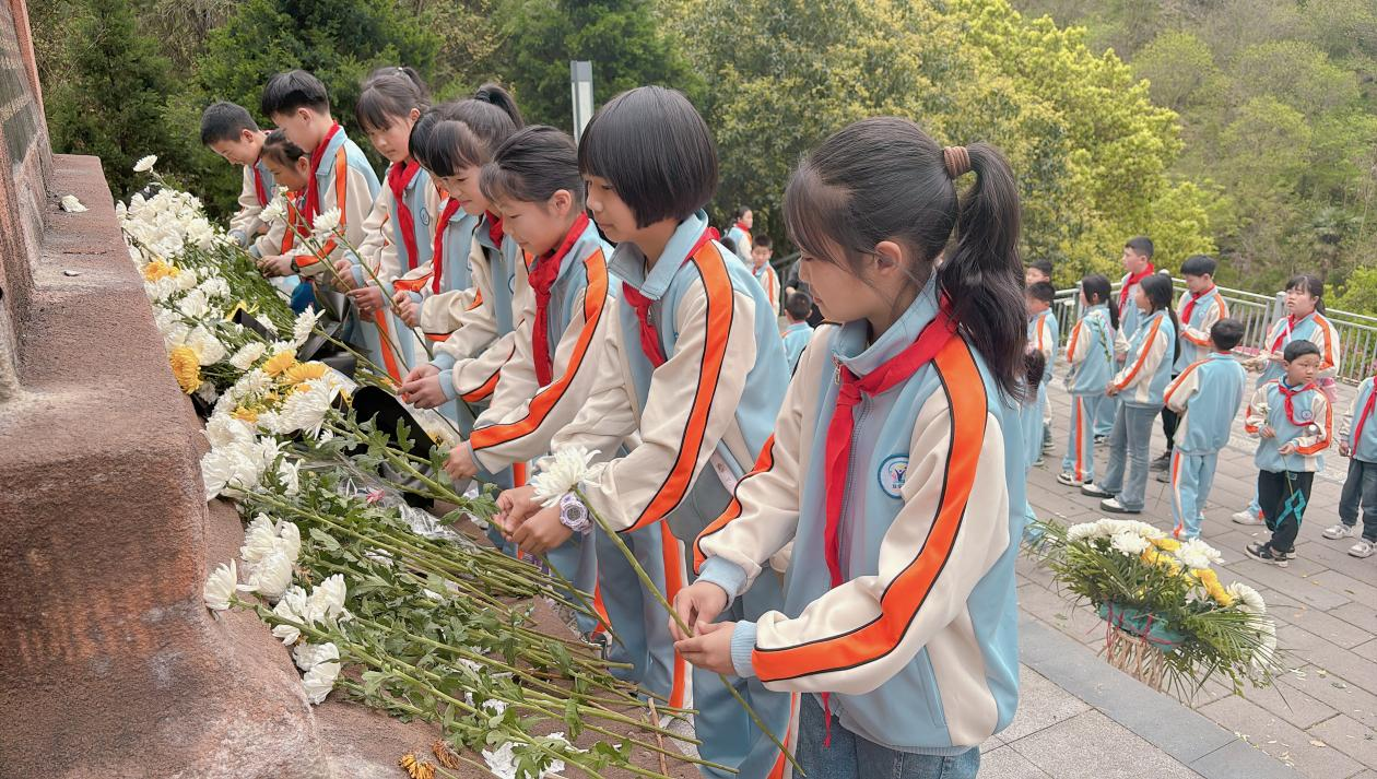 最后,同学们依次向烈士敬献小白花,表达了对革命烈士的哀思与怀念。