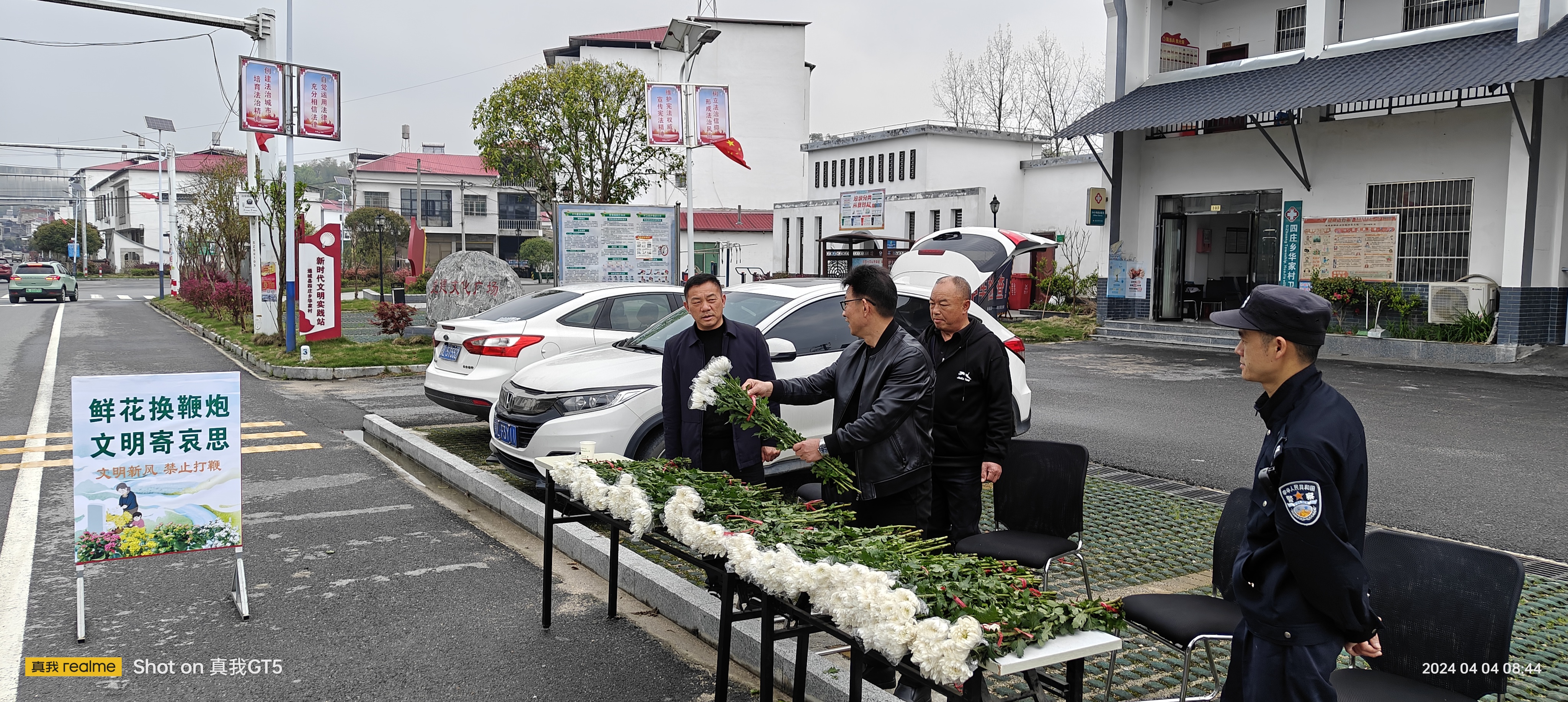 此次“鲜花换鞭炮”行动,四庄乡出动人员30余人,在华家、向家等主干道上设置鲜花领取点,采购鲜花2000余株,将全部免费送予前来祭扫的群众。