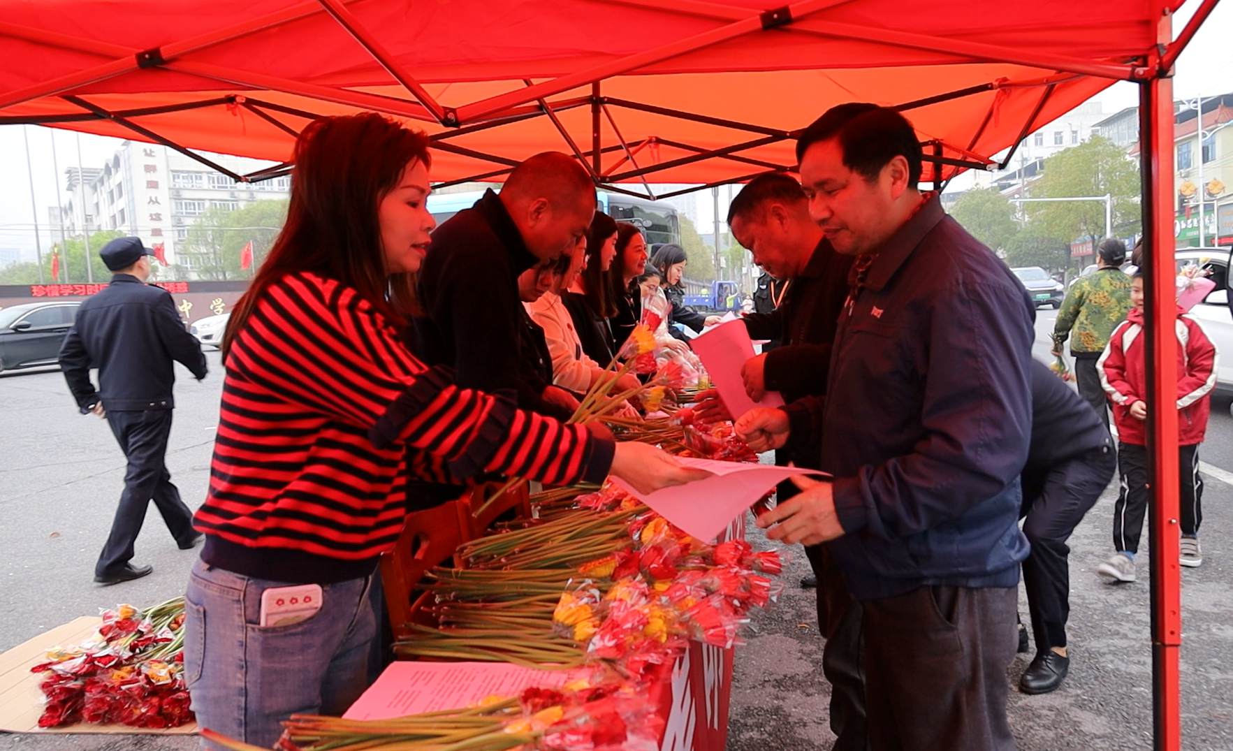 【全媒体记者 何蓉】4月4日,通城县民政局在县一中门口开展清明节鲜花置换活动,大力推广鲜花祭扫等文明低碳祭扫方式,引导群众安全文明低碳祭扫。
