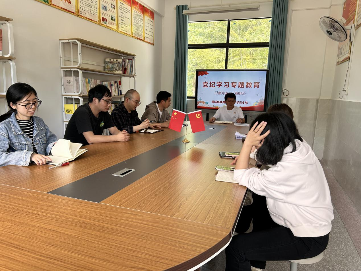 【通讯员 刘耀宇】“有下列行为之一,情节较轻的,给予警告或者严重警告处分……”为进一步加强党的纪律建设,增强党员干部党章·党规·党纪意识,4月18日,通城县塘湖镇润田小学党支部开展党纪学习教育,现场支部全体党员、积极分子参与。