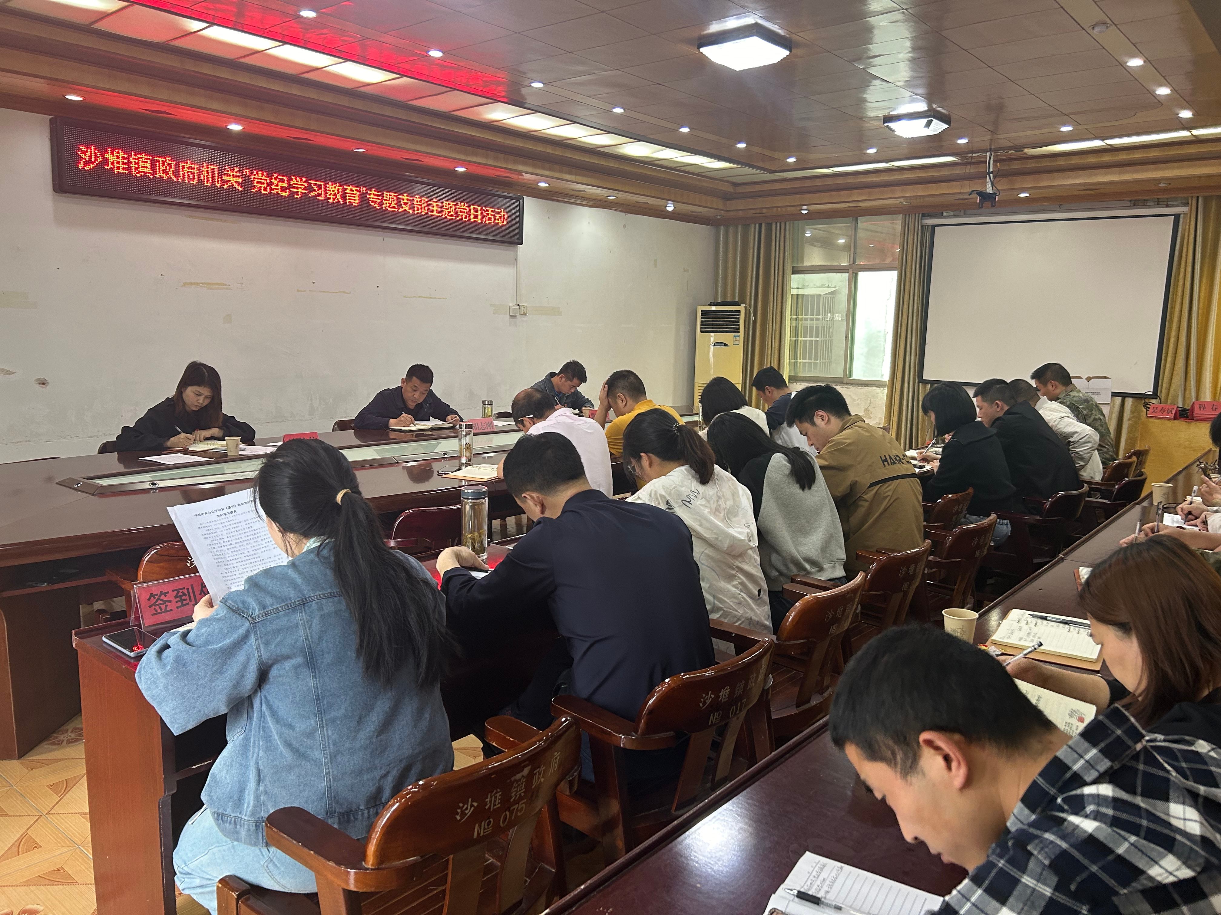 【通讯员 胡典】4月17日,通城县沙堆镇机关党支部组织全体党员、预备党员、入党积极分子,开展“党纪学习教育”专题支部主题党日活动,旨在加强党的纪律建设、推动全面从严治党向纵深发展,引导全镇党员干部做到学纪、知纪、明纪、守纪。