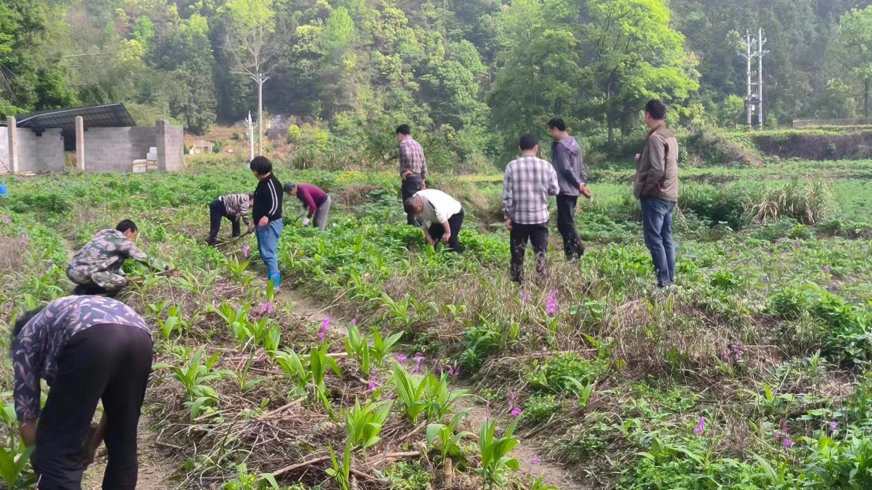 “现在是管护期间,村民需要做的工作就是除草、施肥。工作比较轻松,一天也有150元左右的收入,离家也近,驻村工作队也会参与药材基地的除草施肥。”大溪村党支部书记梅旺阳说到。