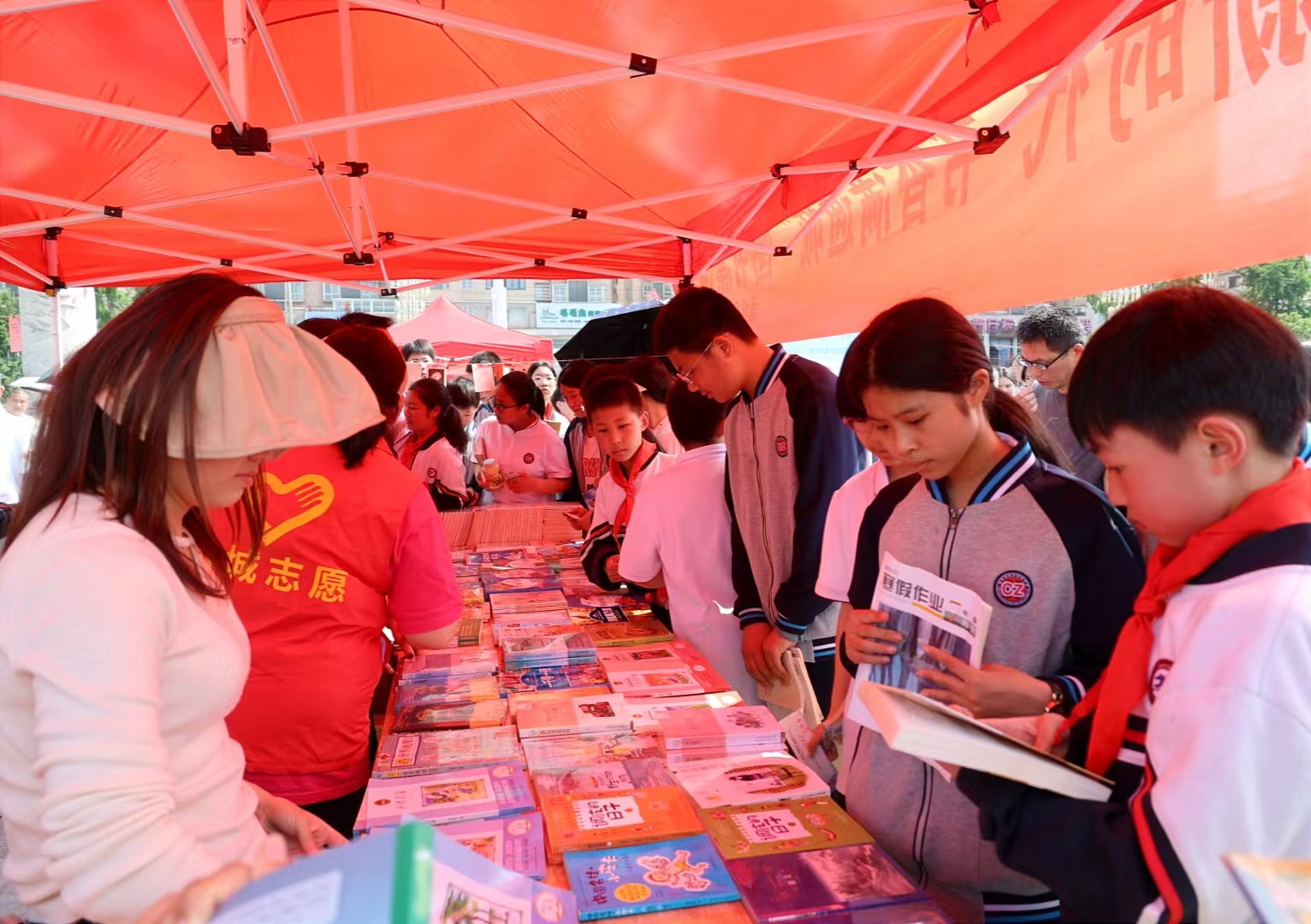 活动现场,还开展了图书展、你看书我买单、图书漂流、“我最想读的一本书”横幅留名纪念、有奖知识竞猜等互动体验活动。县新时代文明实践中心的志愿者们热情地向市民们介绍图书的种类、借阅方式和图书馆的特色活动展板。