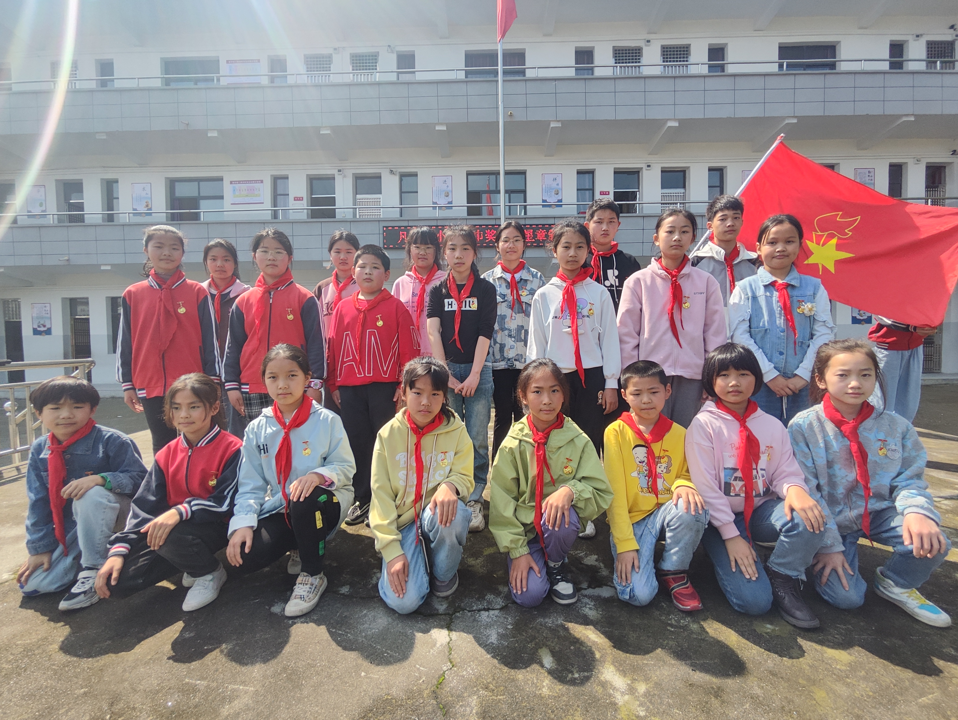 随后,全体少先队员齐声高唱《中国少年先锋队队歌》。该校相关负责人汇报了“红领巾奖章”一星章争章活动开展情况,分享争章活动过程。宣读“红领巾奖章”一星章获奖名单,并为获得一星章的个人和集体颁章。
