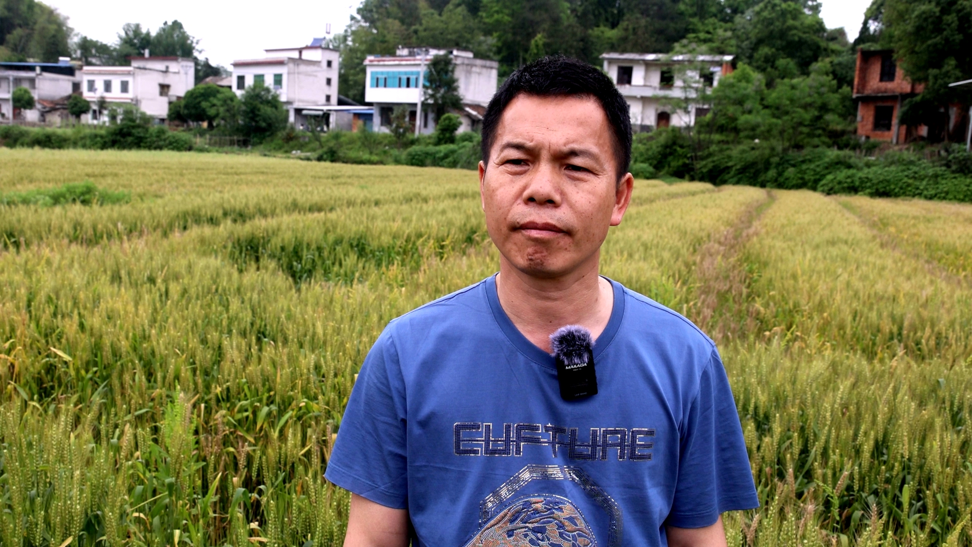 隽水镇上阔村村民 杜胜先:好的很,农业农村局送药,派无人机给我打药,搞了两次,效果很好,往年赤霉病厉害得很,今年基本上没病。