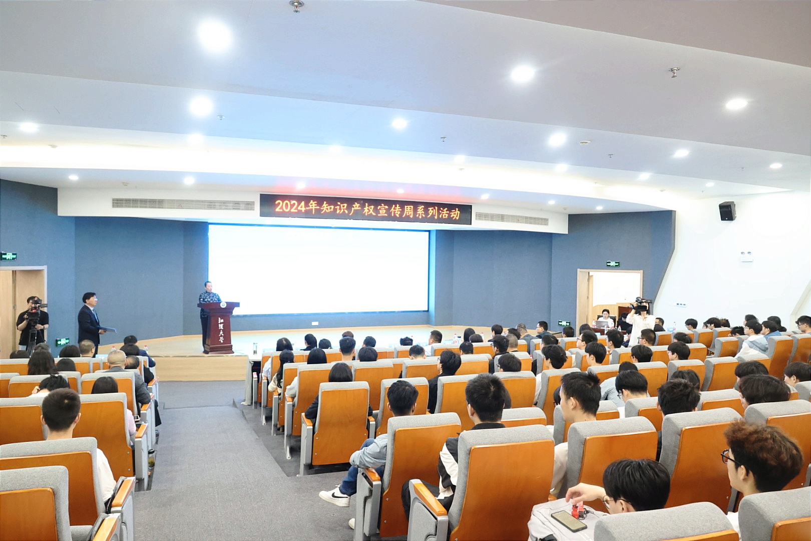在江汉大学图书馆学术报告厅,李慧芳一行参加了知识产权宣传周活动开幕式,并观摩了以知识产权、法规政策、司法保护、科技创新为主题的主旨演讲。