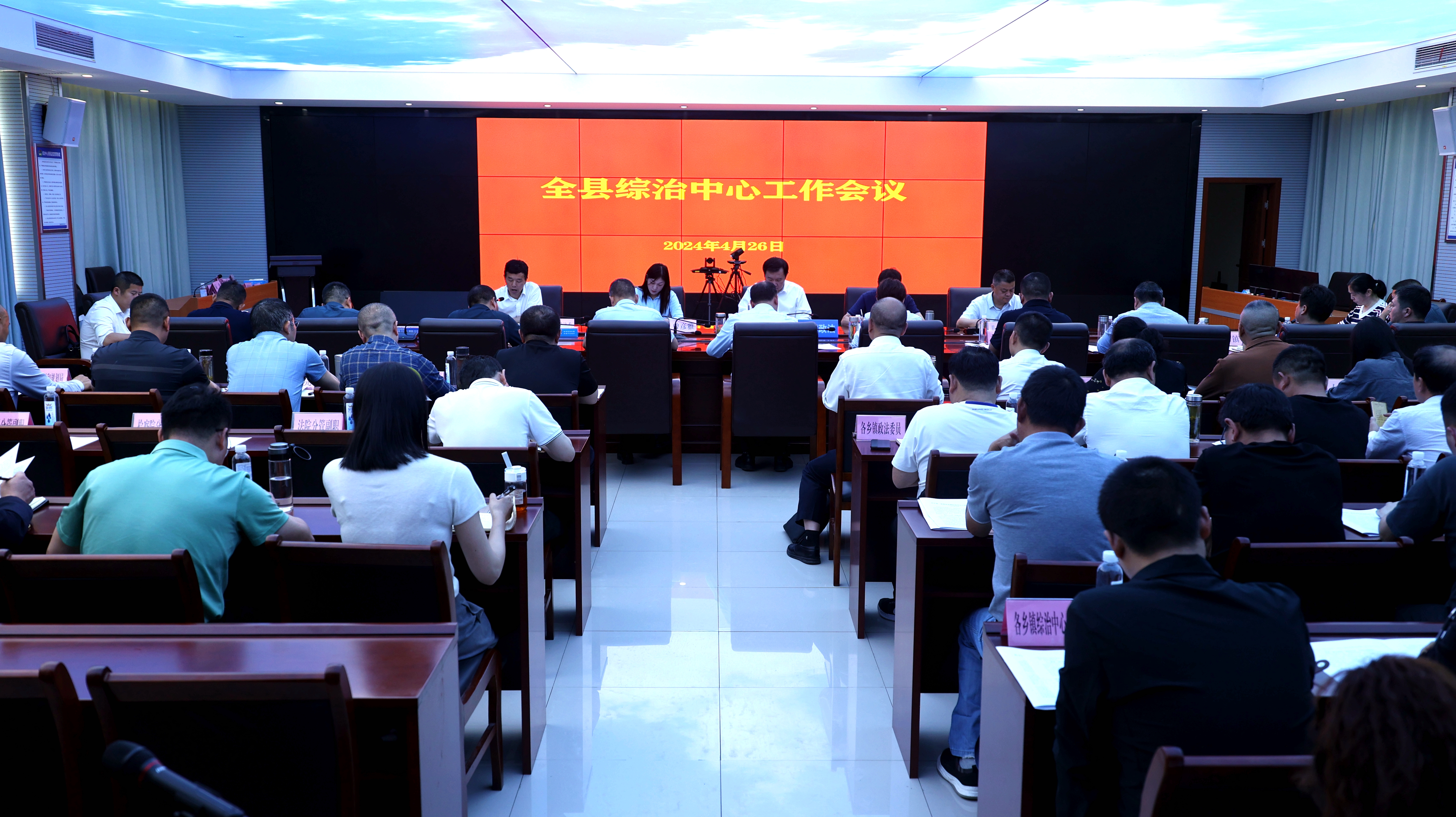 会议传达学习了中共中央办公厅国务院办公厅关于印发《维护社会稳定责任制规定》文件精神、4月24日全市平安稳定工作研判调度会议精神、中央政法委新时代“枫桥经验”培训班精神;解读了《关于进一步优化提升乡镇综治中心工作的通知》;参会单位依次作了表态发言。