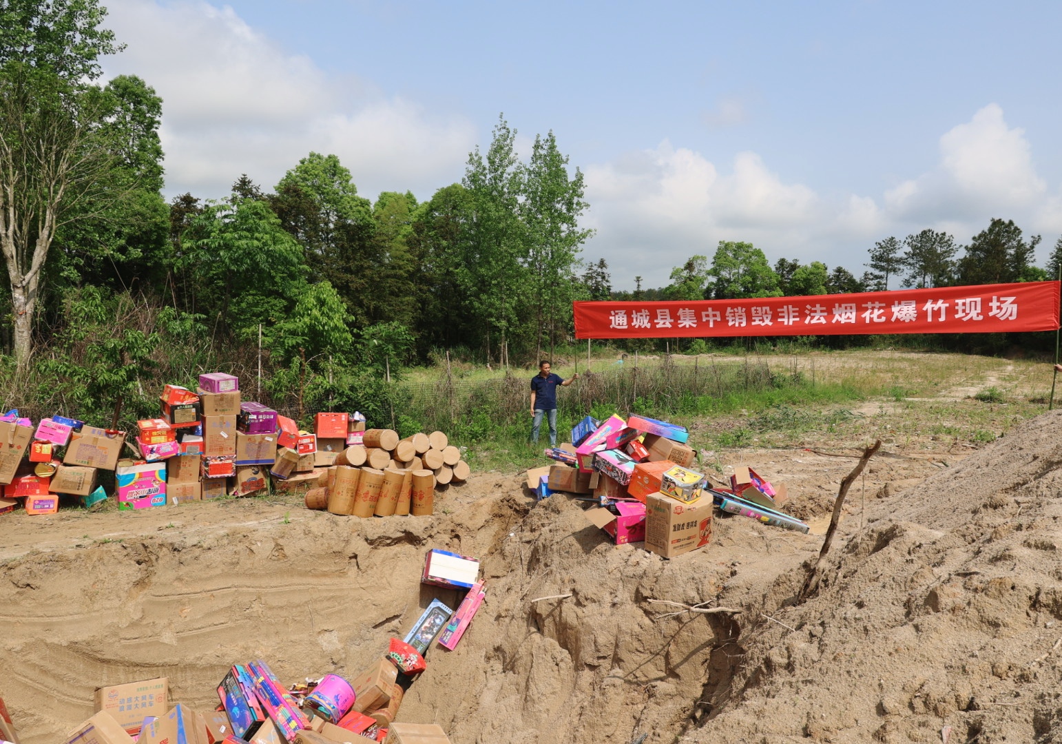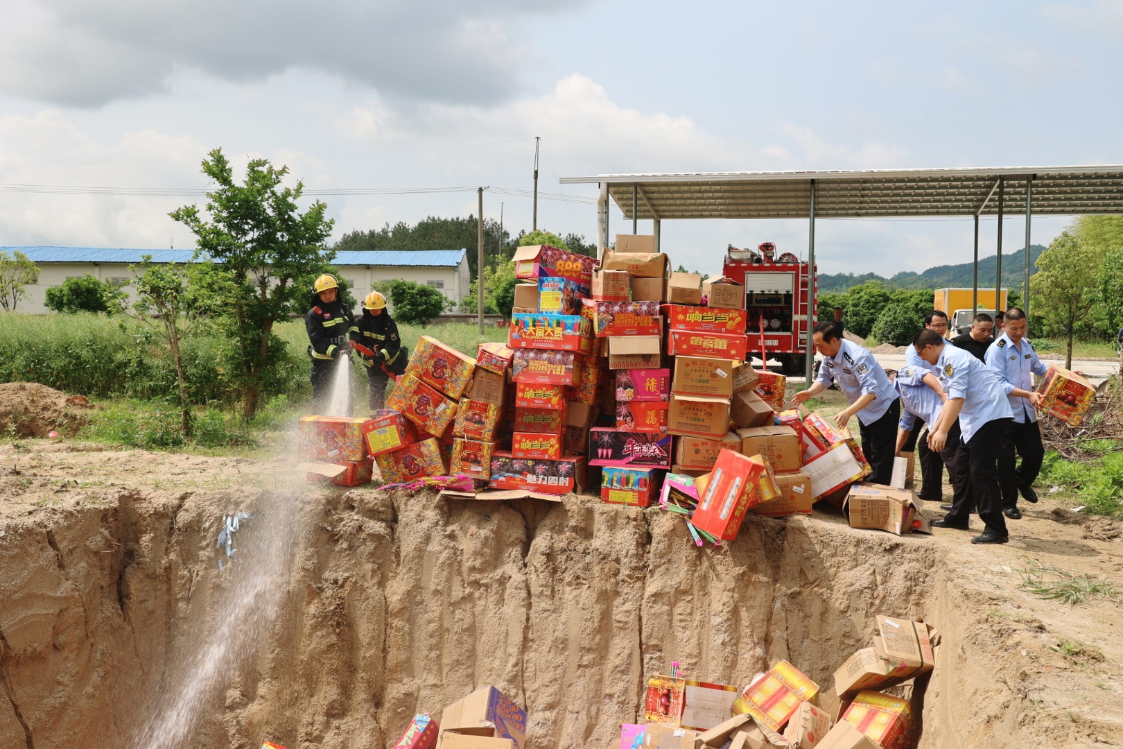 【全媒体记者 李索】4月28日,通城县公安局、通城县应急管理局、通城县消防救援大队联合开展行动,对前期收缴的一批非法烟花爆竹进行集中销毁。