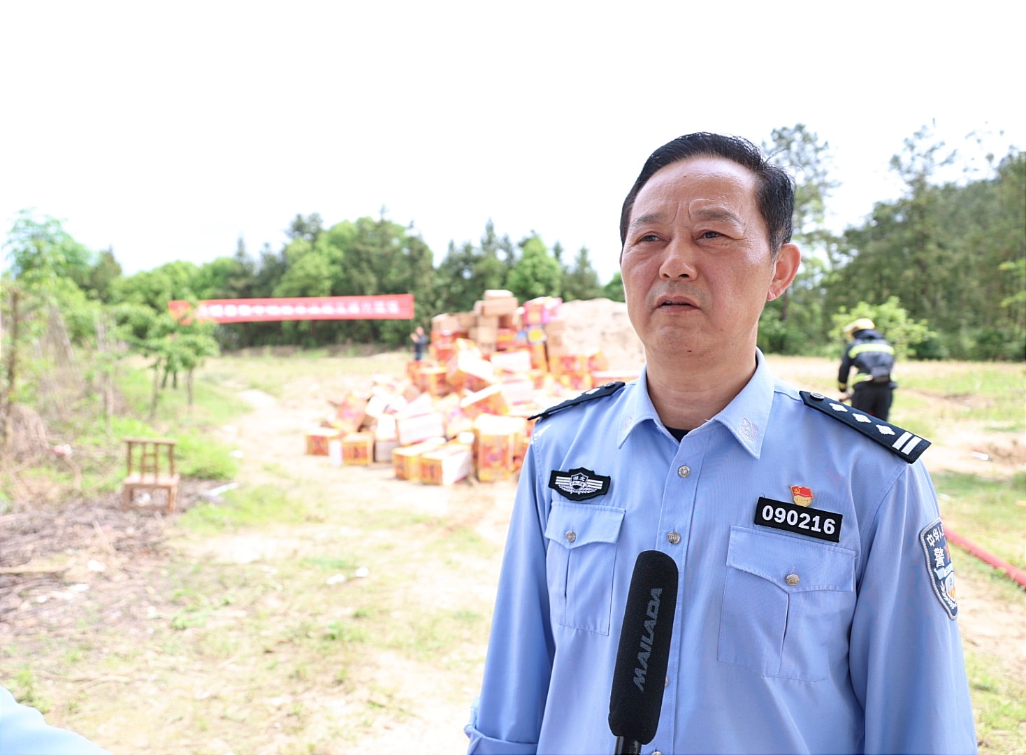 通城县公安局内保大队大队长、鞭炮整治专班负责人 胡金舒:此次集中销毁的烟花爆竹是通城县近三年以来,各部门、各乡镇开展烟花爆竹“打非治违”专项行动过程中收缴的产品,共计3000余件,销毁数量较大,进一步体现了“严执法、重实效”的原则,规范了烟花爆竹批发零售经营行为,同时有力地打击了非法储存和销售烟花爆竹行为。