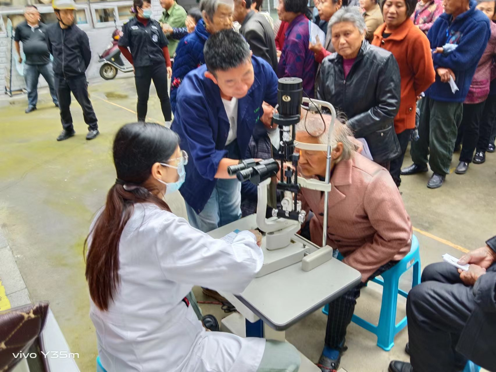 为确保义诊活动顺利开展,前期各村(社区)党员干部对辖区内患眼疾人员进行摸底调查,共组织328名群众参与。活动现场,大坪乡党员志愿者负责引导群众登记,负责维护现场秩序,并为听不懂普通话的老人们当起了“小翻译”。