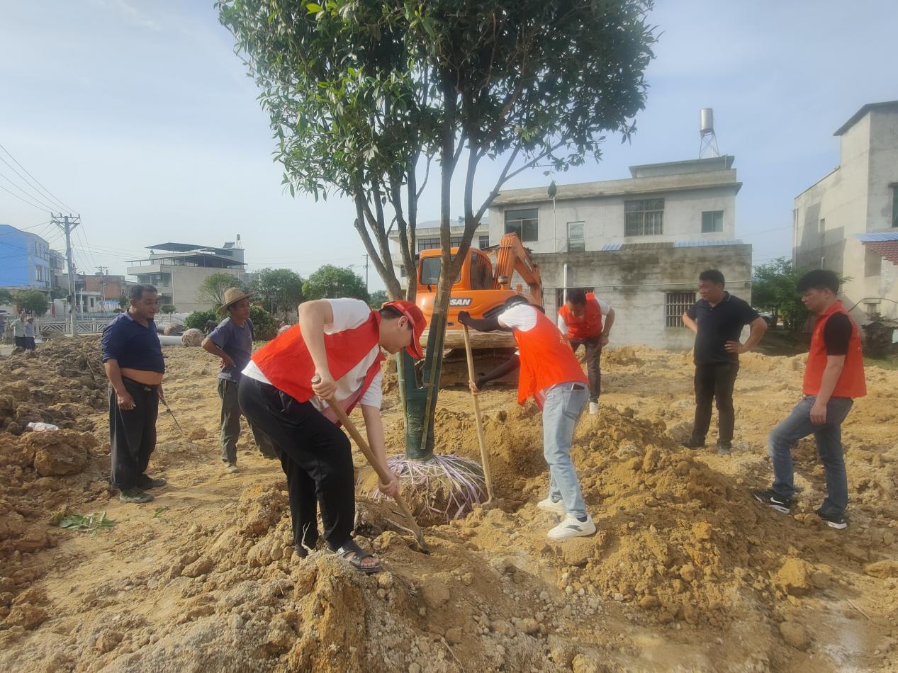 活动现场,镇机关干部联合湾船咀村党员群众一起挥锹夯土、扶苗培土、堆土围堰、平整踩实,大家热情高涨、干劲十足,有条不紊地完成了每一道工序。通过大家的团结协作,几棵魁梧的大树迎风挺立,孕育着勃勃生机,焕发出绿色希望。