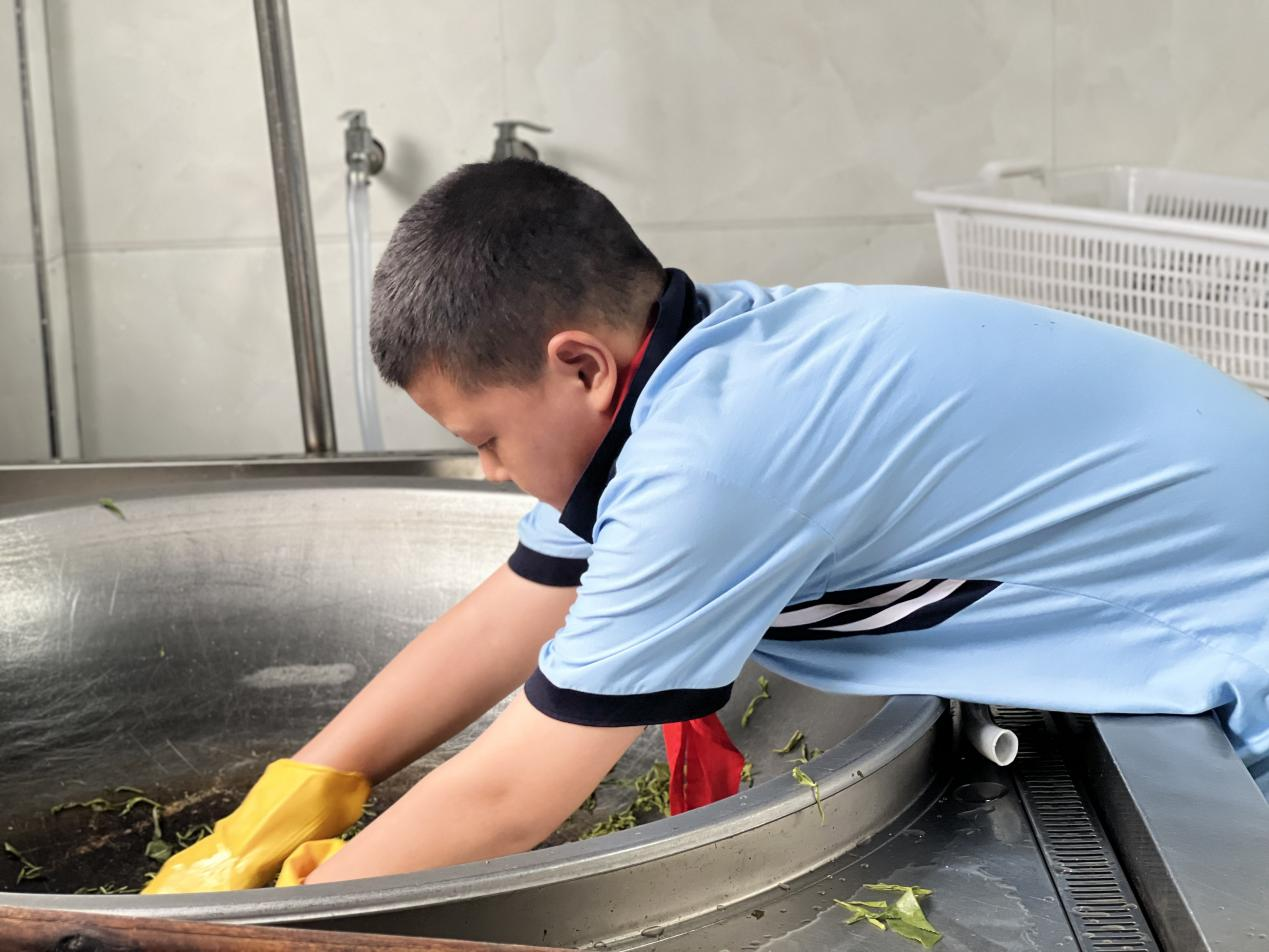 采摘完成后,同学们还参与了制茶。晾青、杀青、捻揉、烘干等制茶工序,亲眼见证了一片叶子的神奇蜕变。在这个过程中,同学们不仅学会了制茶的基本技能,还在品尝甘洌醇厚的茶味中,感悟了中国传统茶文化的深厚底蕴。