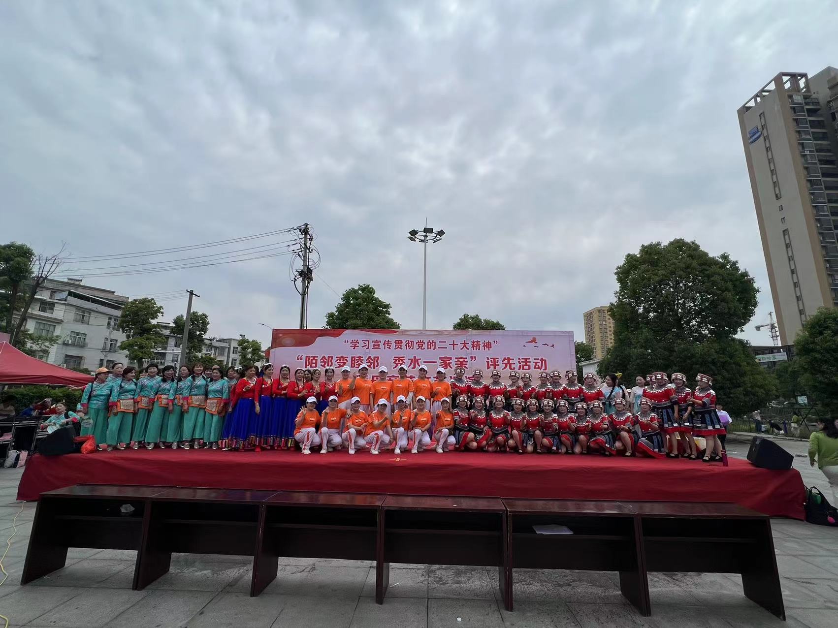 活动伊始,社区党总支书记就一年来的工作开展情况向广大居民作了汇报;社区全体工作人员上台主动亮身份、亮承诺;同时,评选表彰了2023年度“最美志愿者”和2024年第一季度“最清洁小区”。伴随着雷鸣般的掌声,汇演在秀水社区康尔乐舞蹈队带来的舞蹈《我们共同的家》拉开序幕。