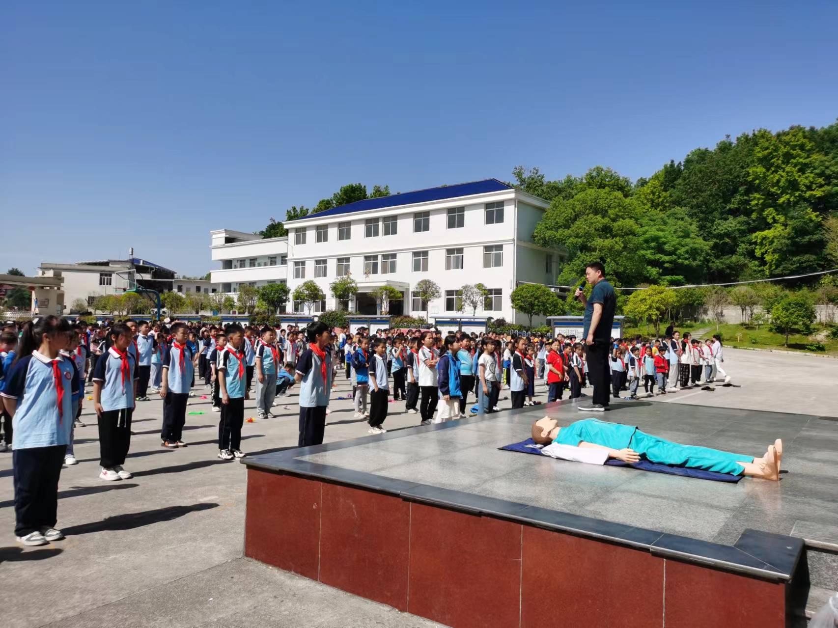 900多名师生共同学习了这一堂既“干货”满满又生动有趣的防溺水宣传课。宣传伊始,沙堆卫生院医务人员通过真实的案例和现场互动游戏,向师生们普及了户外野泳的危害以及意外溺水时岸上救援的重要性。告诉孩子们不能在没有大人的陪同下独自接近水域,更不能在缺乏安全防护的前提下随意去救溺水的人。随后,队员们现场模拟了发生溺水事故时的几种错误救援方式,并告诉孩子们正确的救援方法。