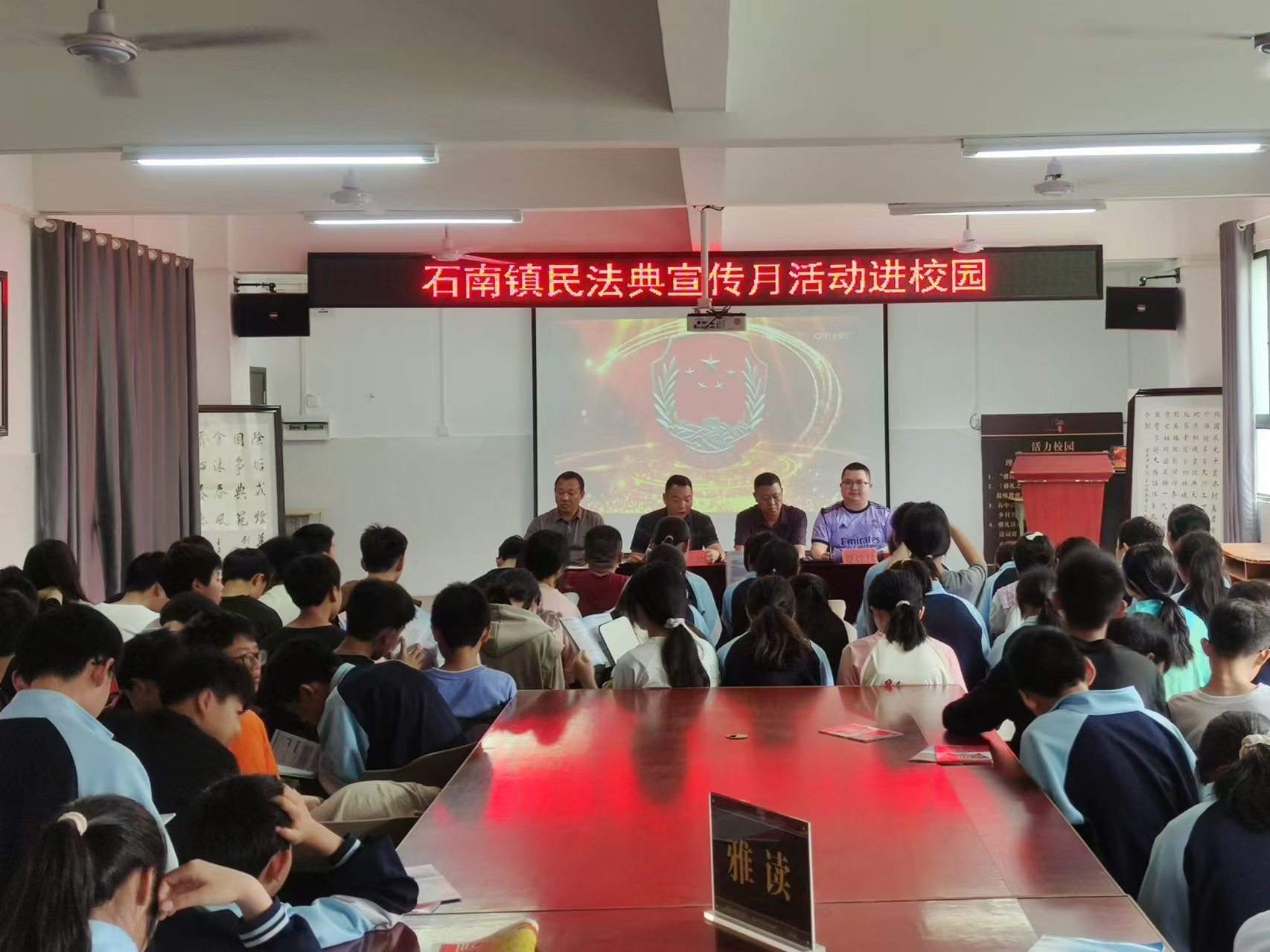 【通讯员 夏徐祎】今年5月是我国第四个民法典宣传月。为进一步做好民法典宣传教育工作,增强未成年人法律意识和法治观念,5月22日,通城县司法局、石南镇综治中心、石南司法所、石南派出所、石南教育站联合在石南中学开展民法典宣传进校园活动。