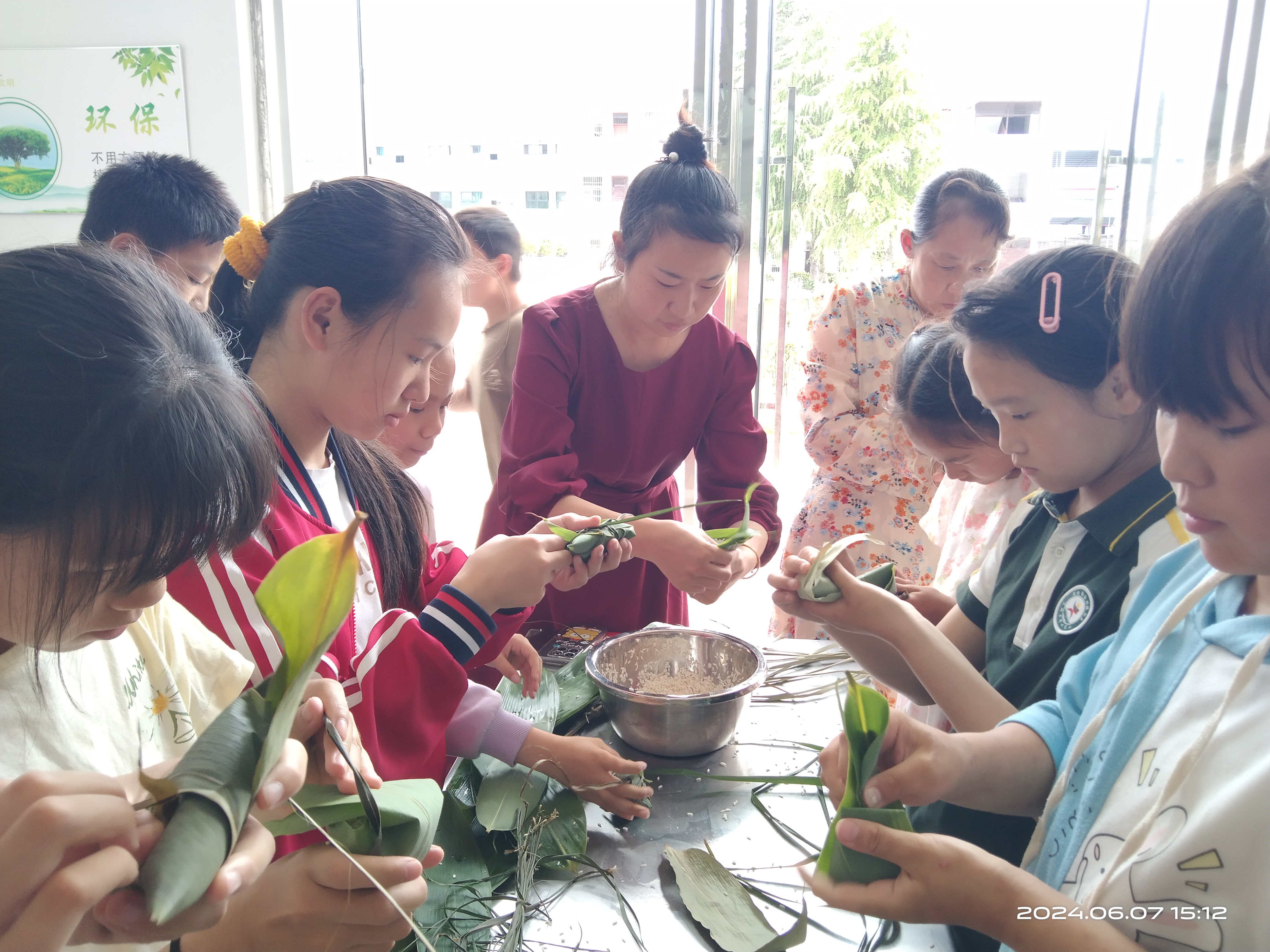 在包粽子的过程中,教师还不忘给学生们讲解有关端午节的知识,讲屈原的爱国情怀,讲当地的民俗文化……学生们在劳动实践中,切实感受到端午节背后的文化魅力和传承。