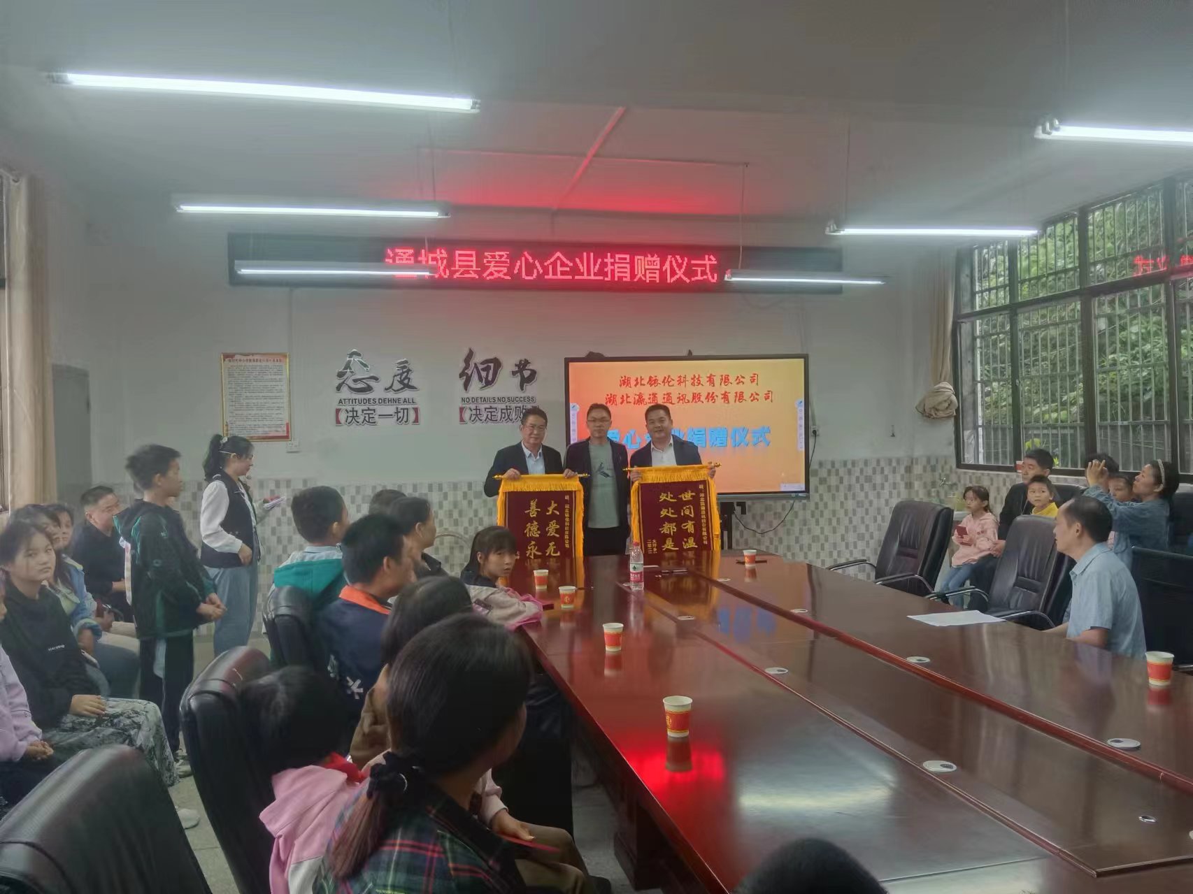 最后,该校负责人给爱心企业送上锦旗,并代表全体师生向两位爱心人士表示诚挚的谢意。此次活动不仅仅是一次捐赠,更是一份爱心的传递。传递给全体师生的一份关怀、一份支持、一份鼓励,浓浓的爱心温暖师生的心田。