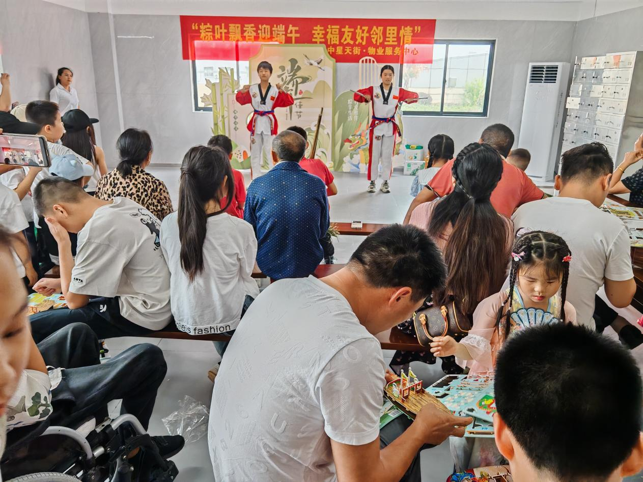 活动现场气氛热烈,孩子们手持道具,为观众们带来了精彩的舞蹈、武术表演。孩子们的表演充满活力,赢得了在场观众的阵阵掌声。物业给孩子们发放了手工龙船模型,通过这次活动,孩子们不仅展示了他们的才艺,更感受到了传统文化的魅力。