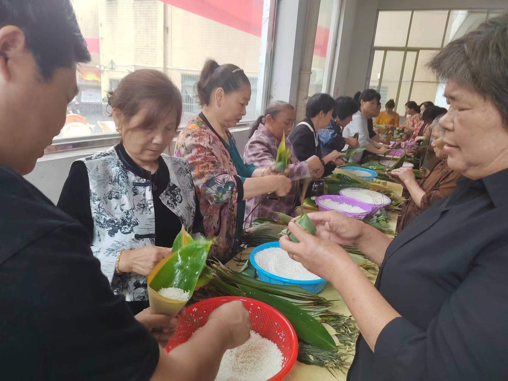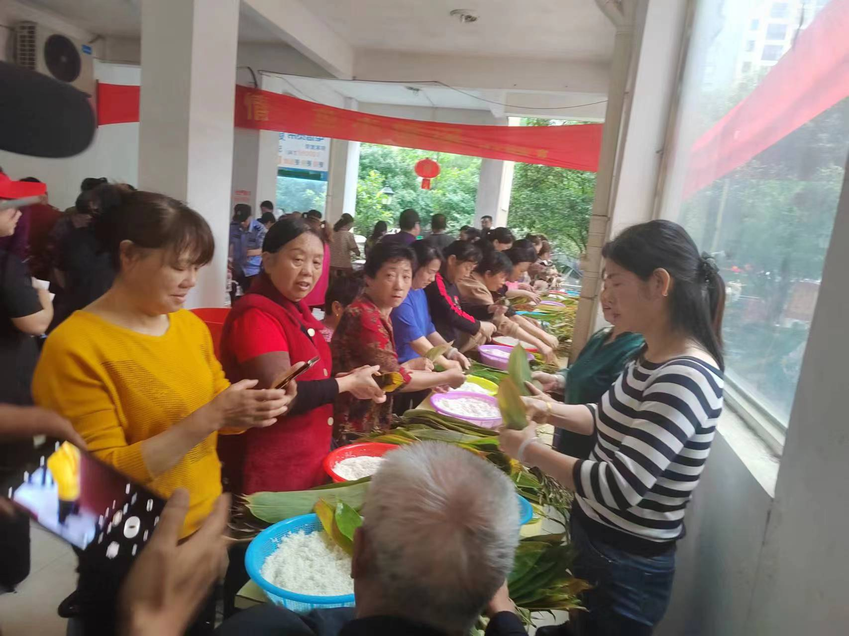 活动现场,热闹非凡。工作人员和志愿者们提前准备了充足的粽叶、糯米等食材,邀请居民们一起参与包粽子。大家纷纷展示自己的手艺,互相交流包粽子的技巧,现场充满了欢声笑语。不一会儿,一个个形状各异、饱满诱人的粽子就摆满了桌子。