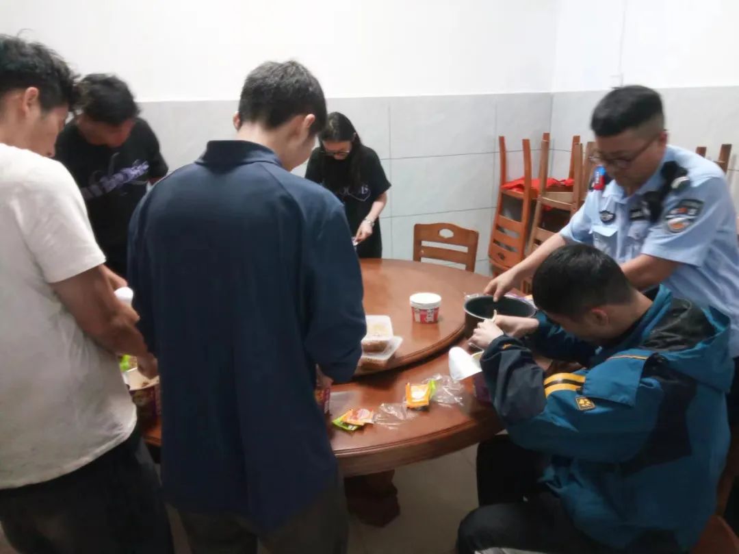 发现他们时,因迷失山林,彷徨无助,加之一天未进食和饮水,均体力严重透支,搜救民辅警们立即将随身携带的食物和水给他们,帮助其恢复体力,确认他们身体无大碍后,有序引导护送他们下山。6月10日凌晨2时许,6名迷路驴友被安全送达麦市派出所休息调整,民警暖心地为他们准备了炒粉和面条充饥,提供场地梳洗更换衣物,并为他们联系住宿酒店。将其安顿好后,民警联系到六名驴友中的领队亲属报了平安。其亲属连夜开车赶往麦市派出所致谢,并将6人安全接走。离开时,6名求助人员对临时救援队员们的及时救援和贴心照顾连声称谢。