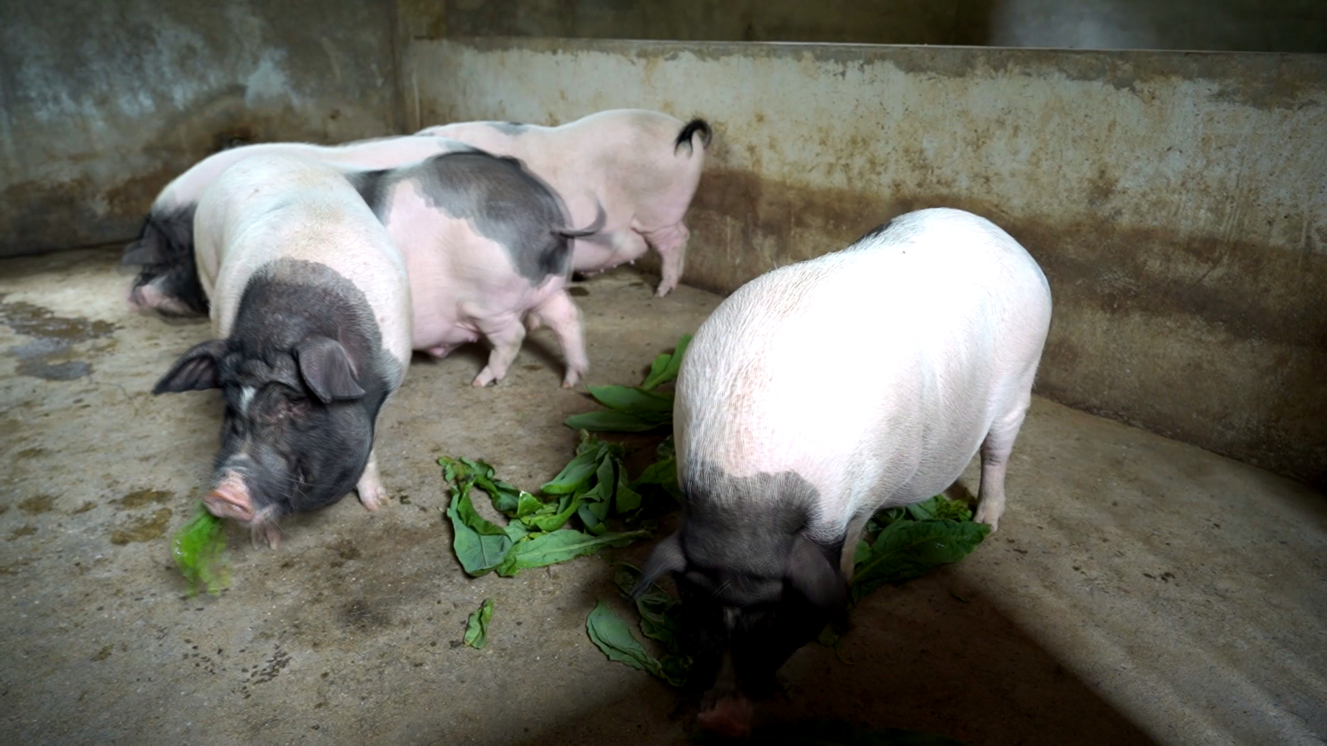 通城县麦市镇冷塅村村民 吴崇甫:跟他们公司合作,就自己种一点菜,搞一点野菜,搞回来煮熟后给猪吃。