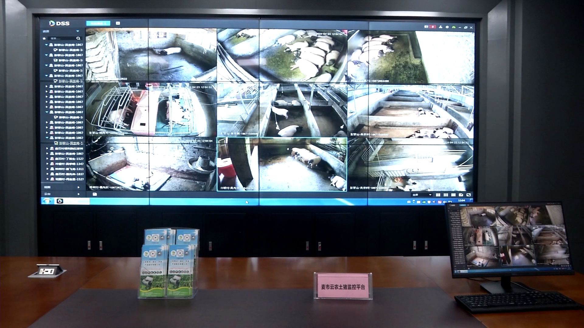 云岳智农(湖北)农业开发股份有限公司总经理 吴孝建:这个屏是我们5G云养猪的监控平台,整个我们223户人家,整个摄像头都是在我们这里可以看得到每家每户,包括猪每天吃的什么东西。