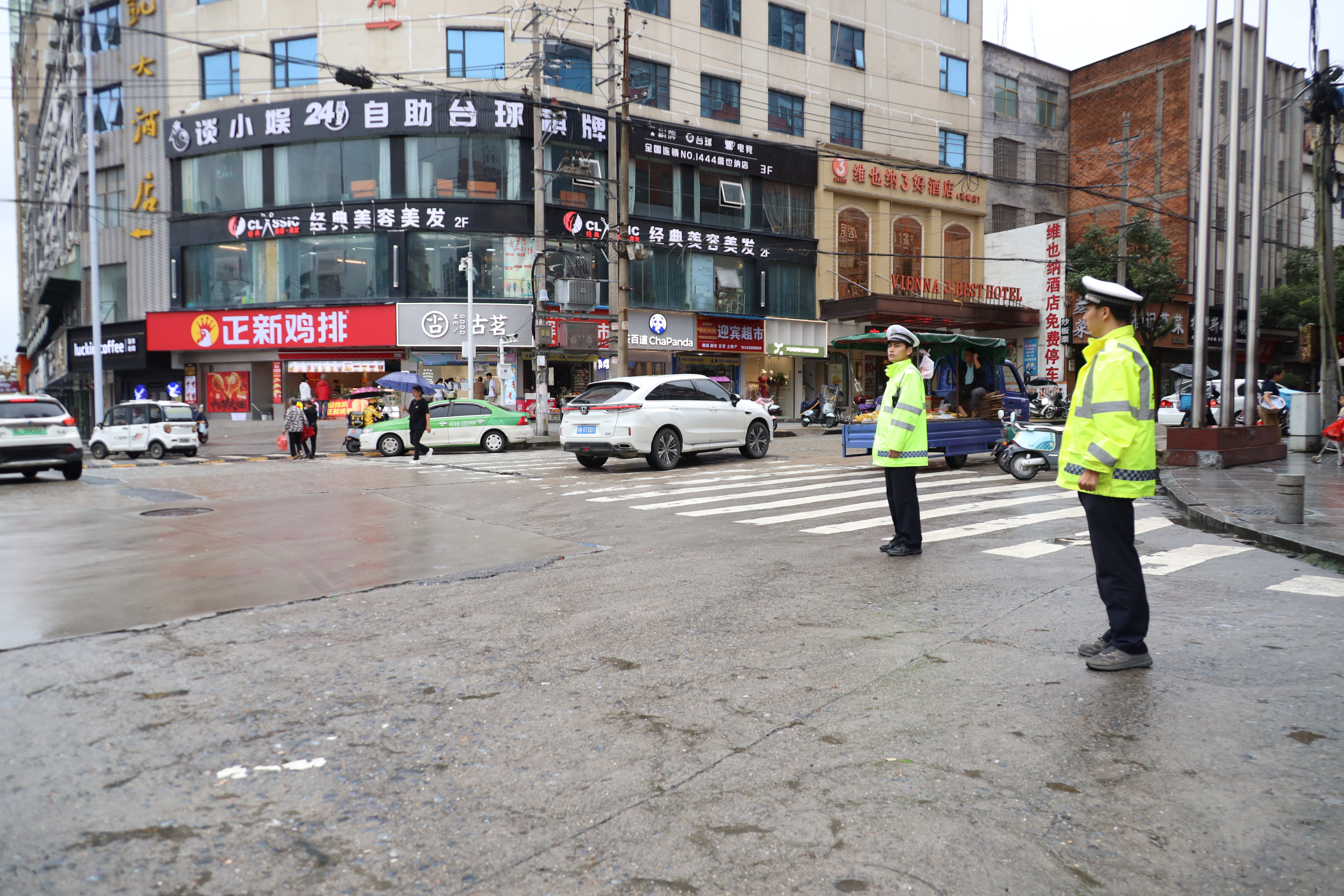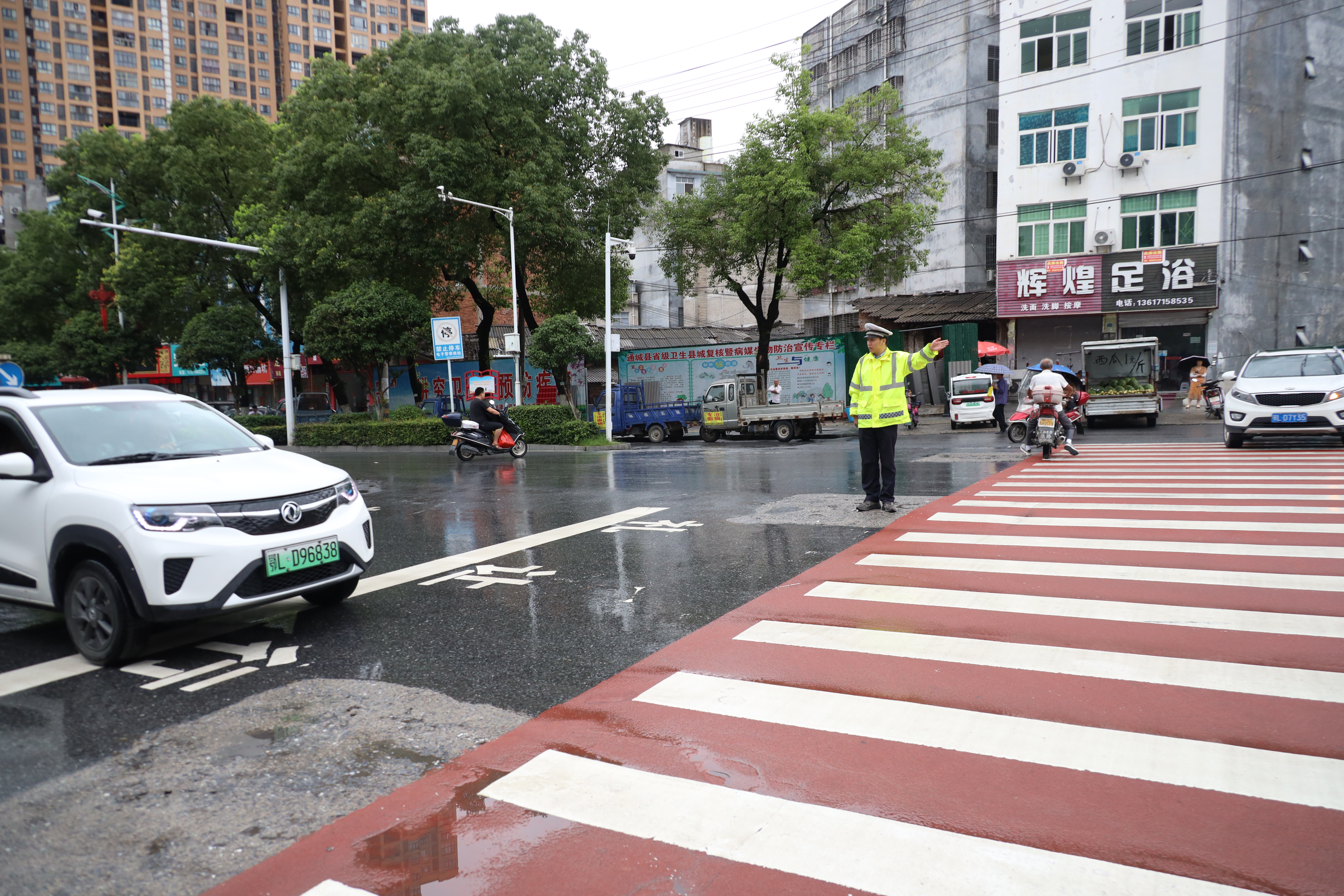 为有效应对连续强降雨天气,通城公安交警根据各路段实际情况,在城区主要干道和各个重点十字路口处科学部署警力,提高交通事故多发路段的见警率。各岗执勤交警化身雨中的“路标”,在各个重要路口实行分流疏导、提醒绕行等管理措施,同时及时清理路面、排水口的障碍物,全力投入到疏导交通、排查隐患、服务群众等工作中,用实际行动保障人民群众出行安全。