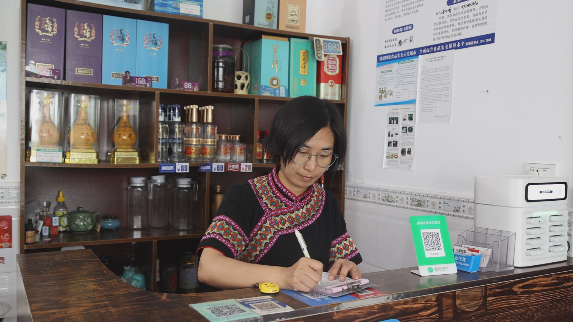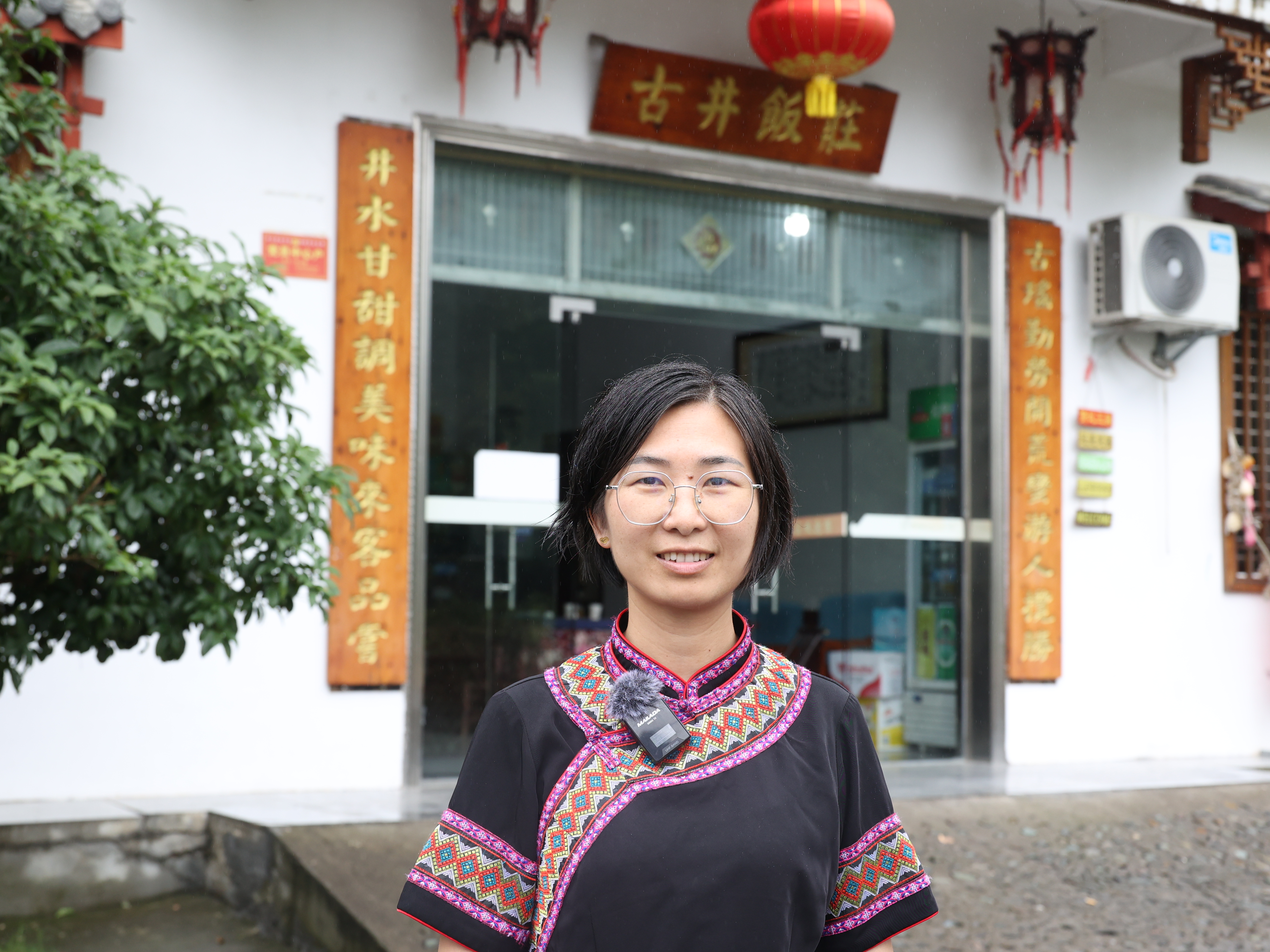 在景区古井饭庄内,包厢内游客满座、生意火爆,老板黎兰洲正在前台核对菜单、准备上菜。2018年底,她看中家门口乡村旅游的商机,返乡将自家房屋改造为农家酒店,并被村“两委”发展成为新一批党员。