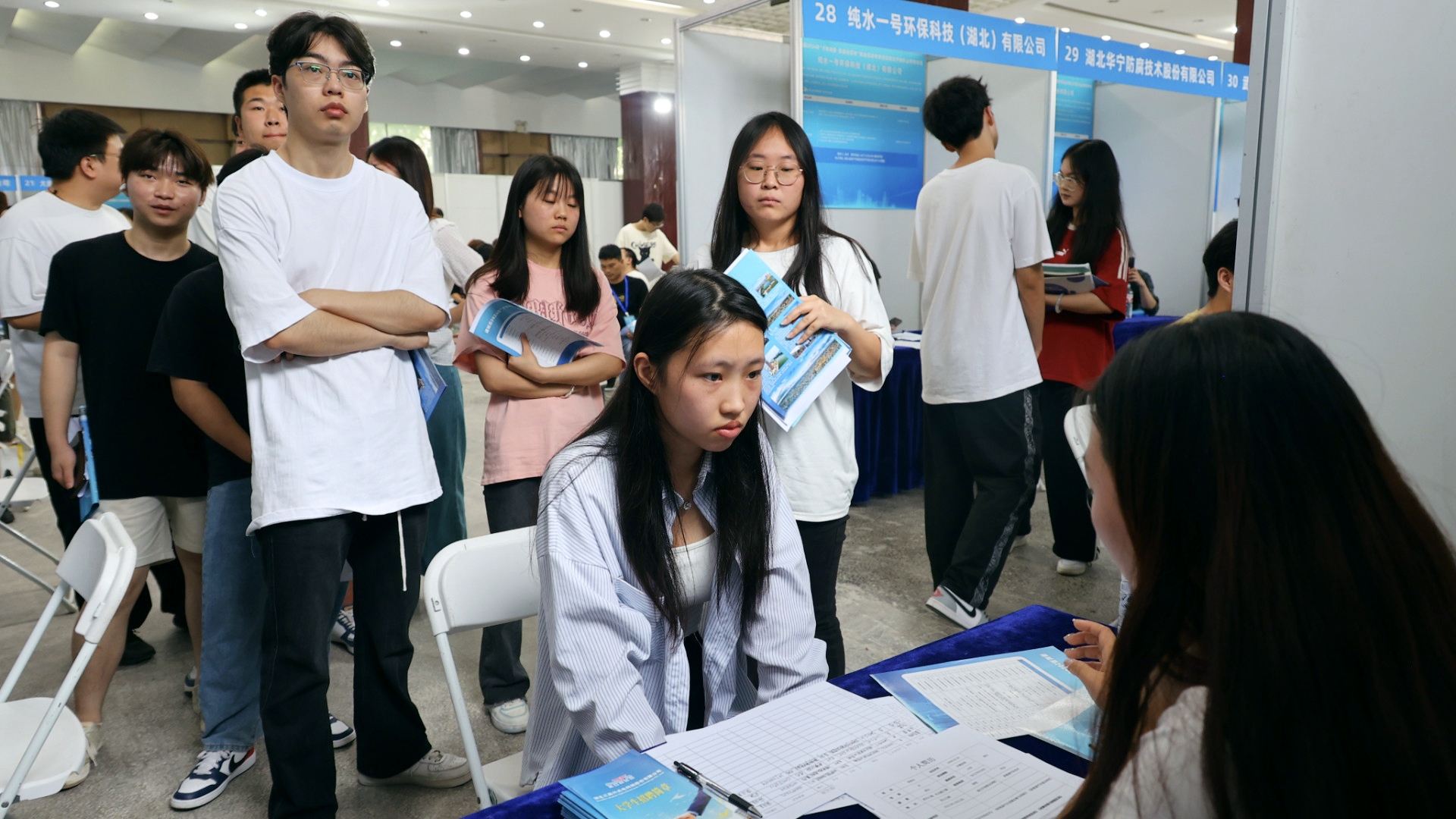 湖北平安电工科技股份公司人事专员 李纳:我们平安电工根据学校学生专业情况,今天主要提供有新能源汽车、机械一体化、化工类、财会类等专业的岗位,到目前收到了很多学生的求职简历,欢迎广大毕业生选择平安电工。