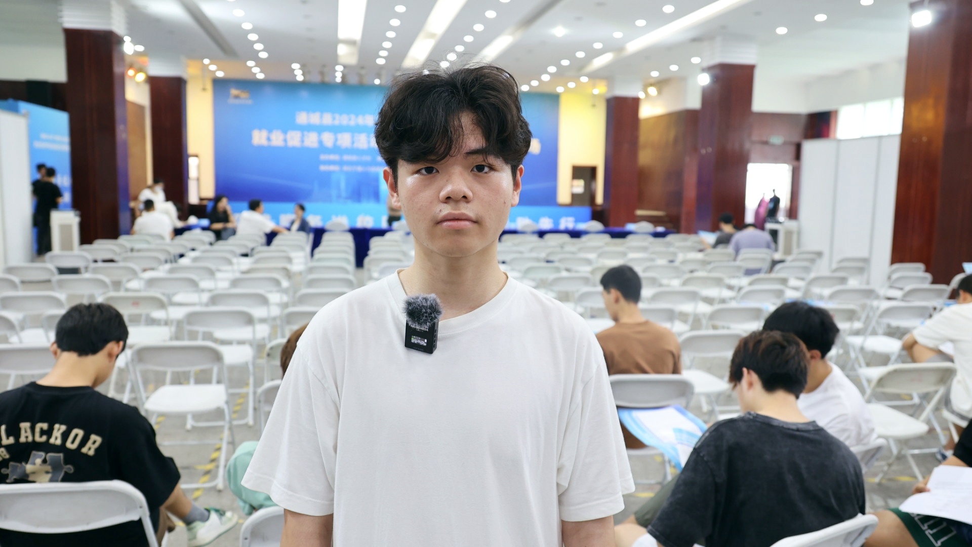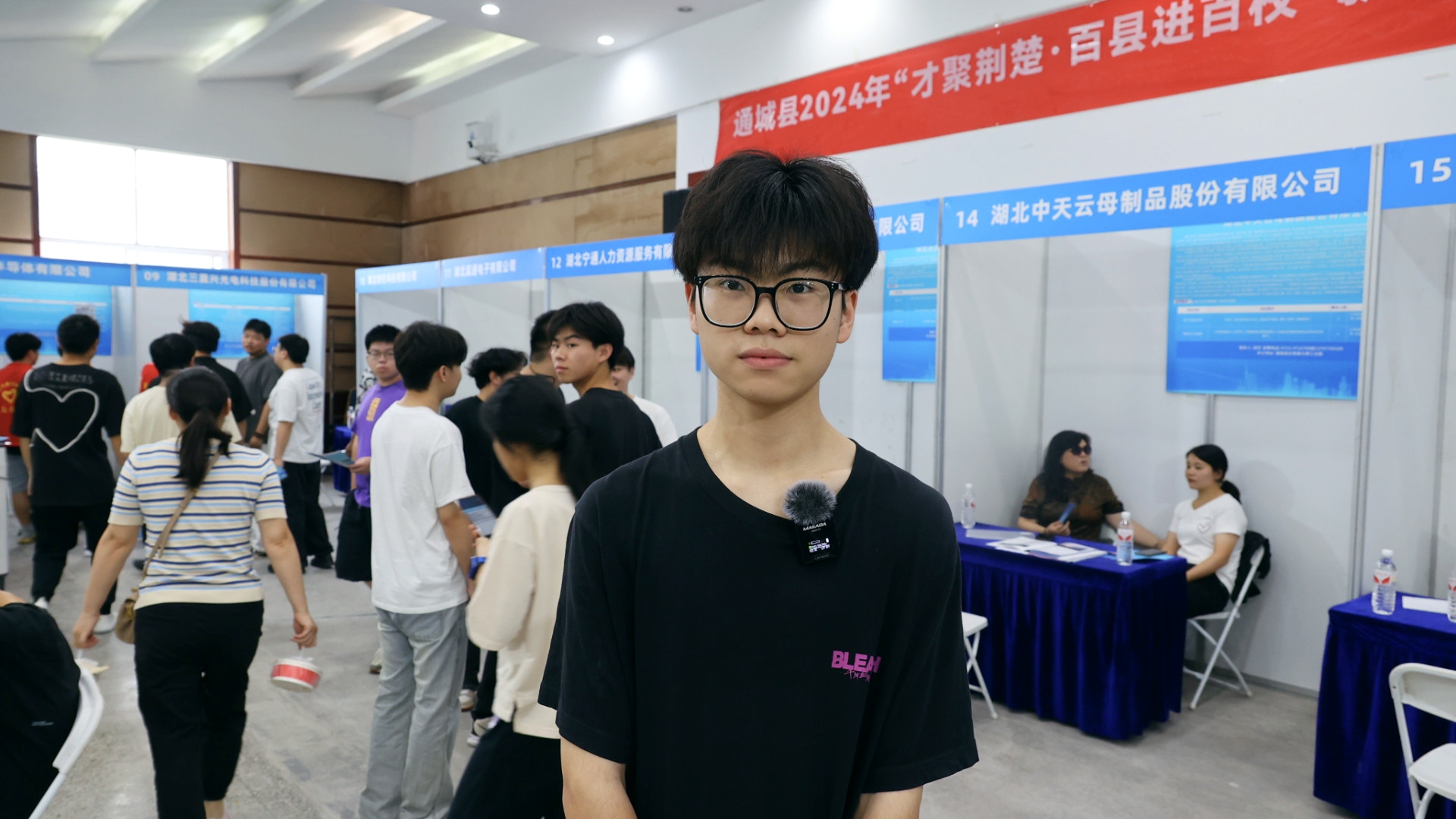 湖北开放职业学院求职学生 於仁杰:我是学机器人专业的,希望在这边能找到一个跟专业对口的工作,通城有很多芯片制造企业,待遇也跟自己的预期相符。