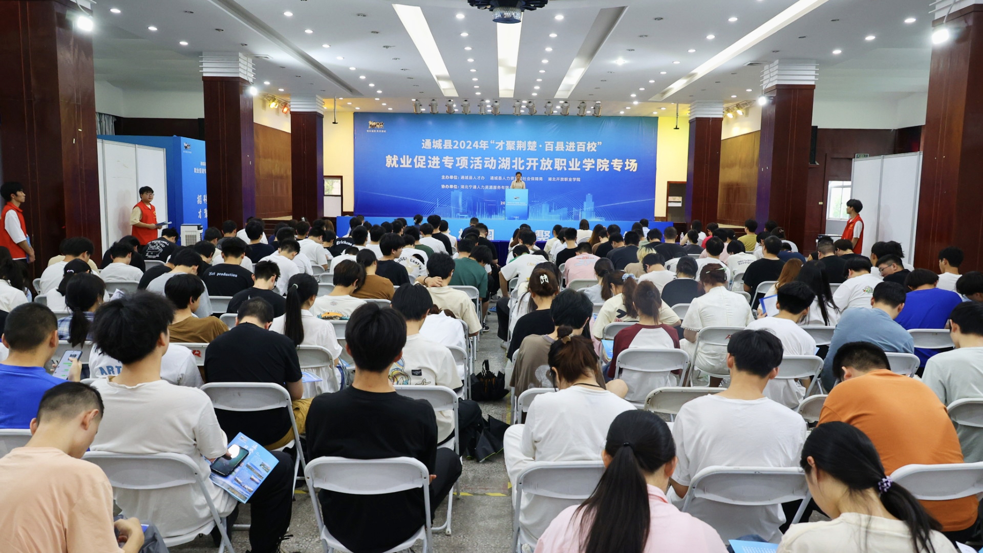 【全媒体记者 罗勇】6月27日,通城县2024年“才聚荆楚 百县进百校”就业促进专项活动走进湖北开放职业学院,抢抓毕业“窗口期”、助力高校“就业季”,打造常态化校地合作引才模式,吸引更多大学毕业生来通城县就业。湖北开放职业学院执行校长周游,院党委书记、副校长张鸿燕等出席活动。