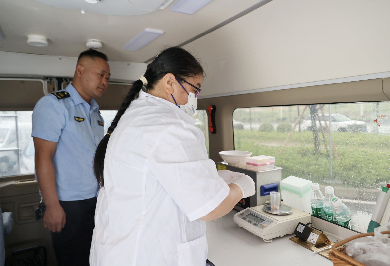6月27日,通城县市场监管局将食品快检车开到鄂南农贸大市场门口,现场免费为市民提供肉类检测服务。