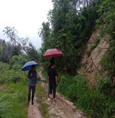 【通讯员 张健】6月27日,由于连日降雨,位于通城县四庄乡上坪村的曹家垅水库下游水圳发生山体滑坡,周边村民出行受到了严重影响。该村两委立马前往现场查看,并及时对该路段封闭,禁止人员车辆通行。