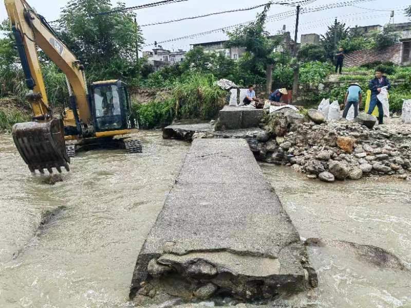 【通讯员 樊泽宇 梁盼辉】近日,受连续强降雨影响,通城县麦市镇多处河道水位迅速上涨,情况不容乐观。6月24日中午,九房村党支部书记在巡河的过程中发现,靠近九房桥河段拦河坝坝体遭受严重损毁,情况紧急,不及时处理有可能导致下游遭受险情。在向镇党委政府报告后,九房村“两委”、驻村工作队及党员志愿者响应号召,迅速行动,全力投入抢险救灾工作。