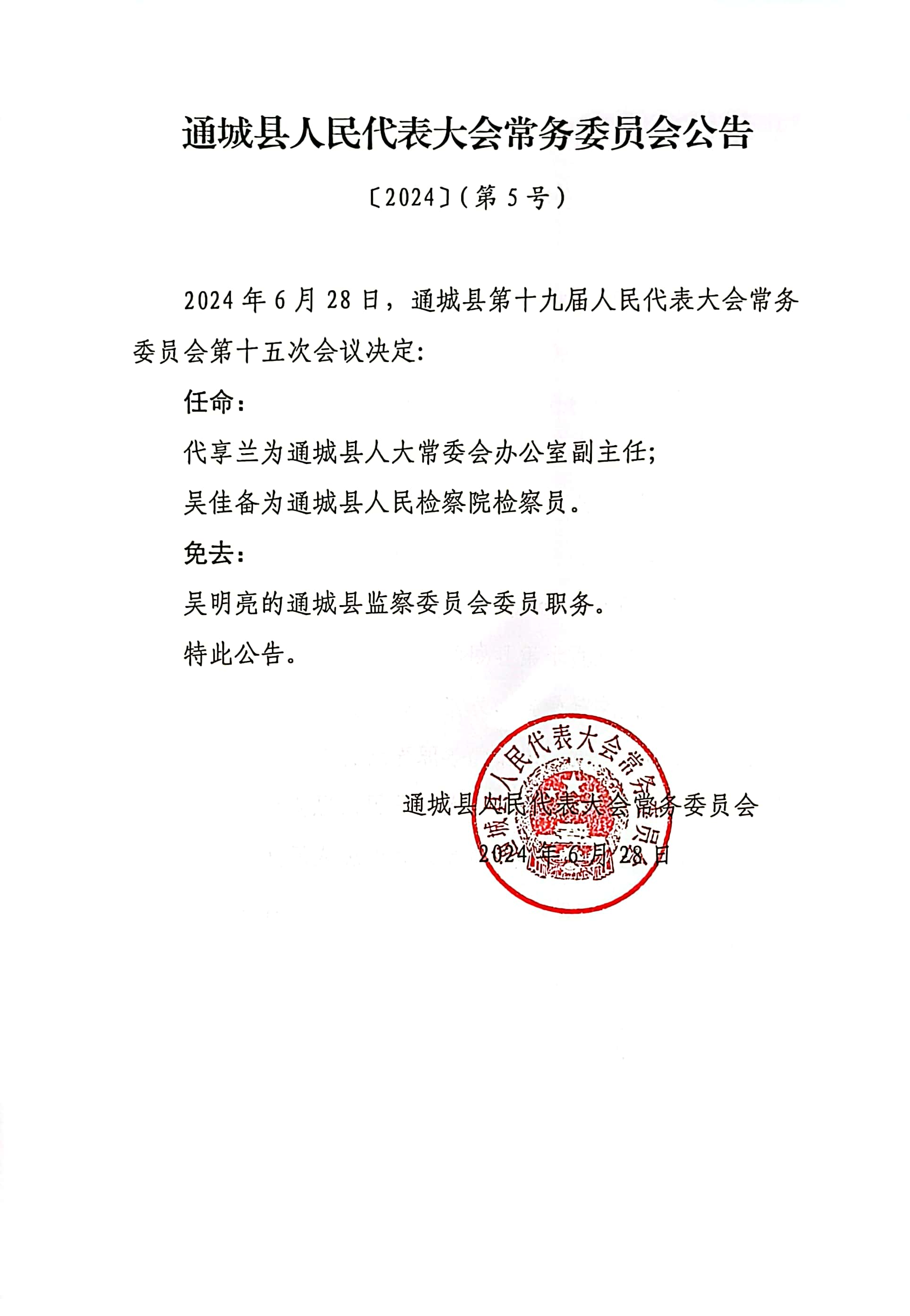 【全媒体记者 罗勇】6月28日,通城县第十九届人大常委会第十五次全体会议召开。县人大常委会主任刘季平出席并主持会议。县人大常委会副主任傅新祥、王玲、周益斌、郭晓富、胡旭明、李三明出席会议。县政府副县长、县公安局局长余亚林,县人民法院院长曾彦雅列席会议。